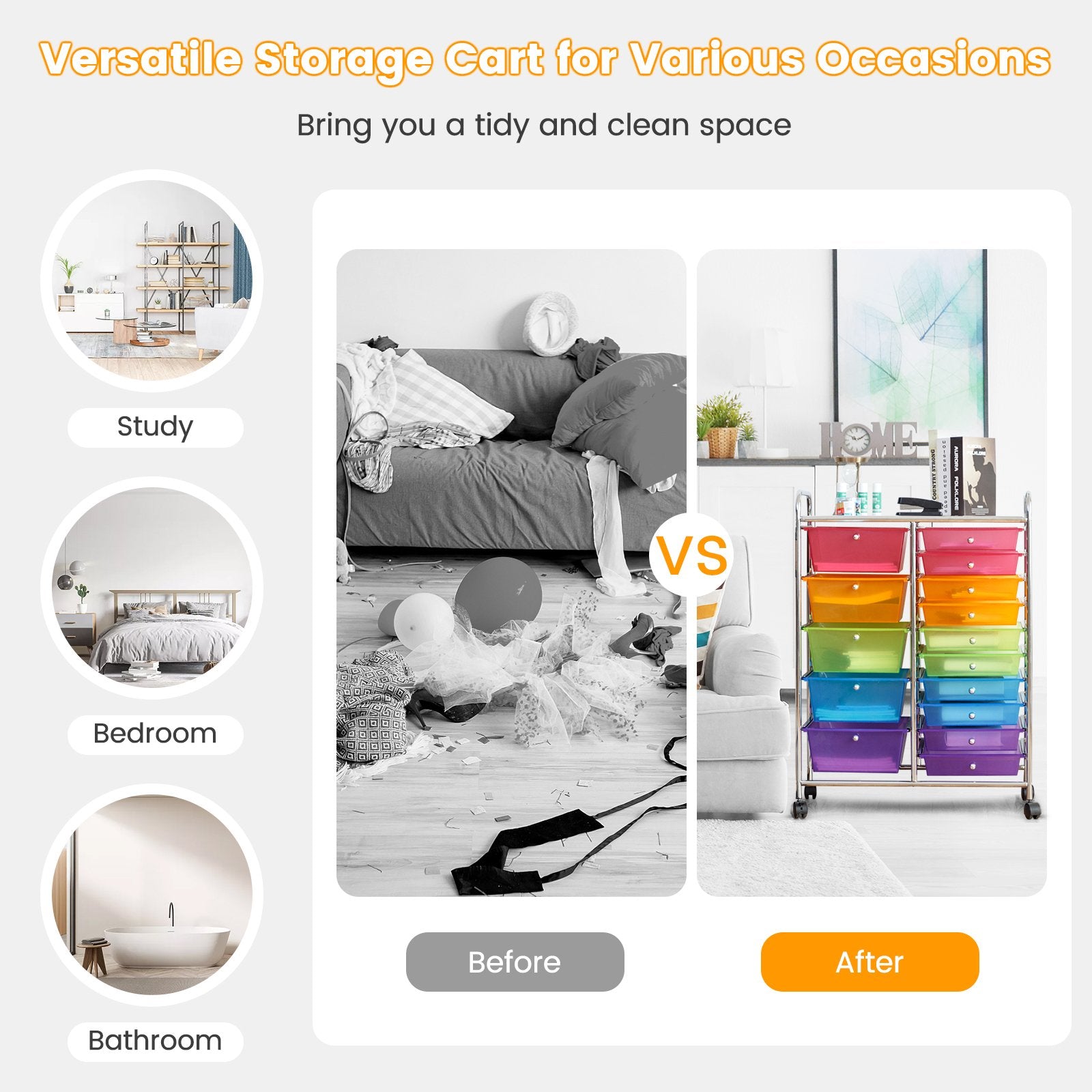 15 Drawers Rolling Storage Cart Organizer-Transparent Multicolor