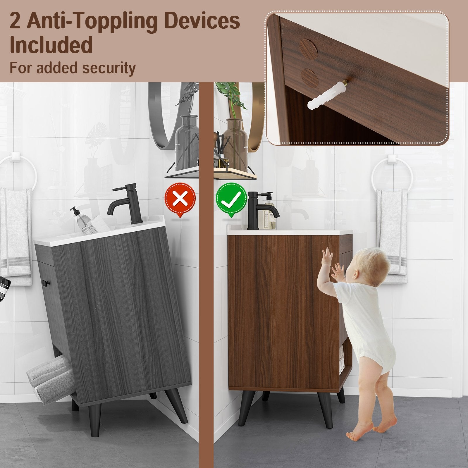 Ample Storage Space: This bathroom vanity consists of a 2-door cabinet and an open shelf to improve space efficiency in your bathroom. The concealed and open storage space also meets your different storage needs.