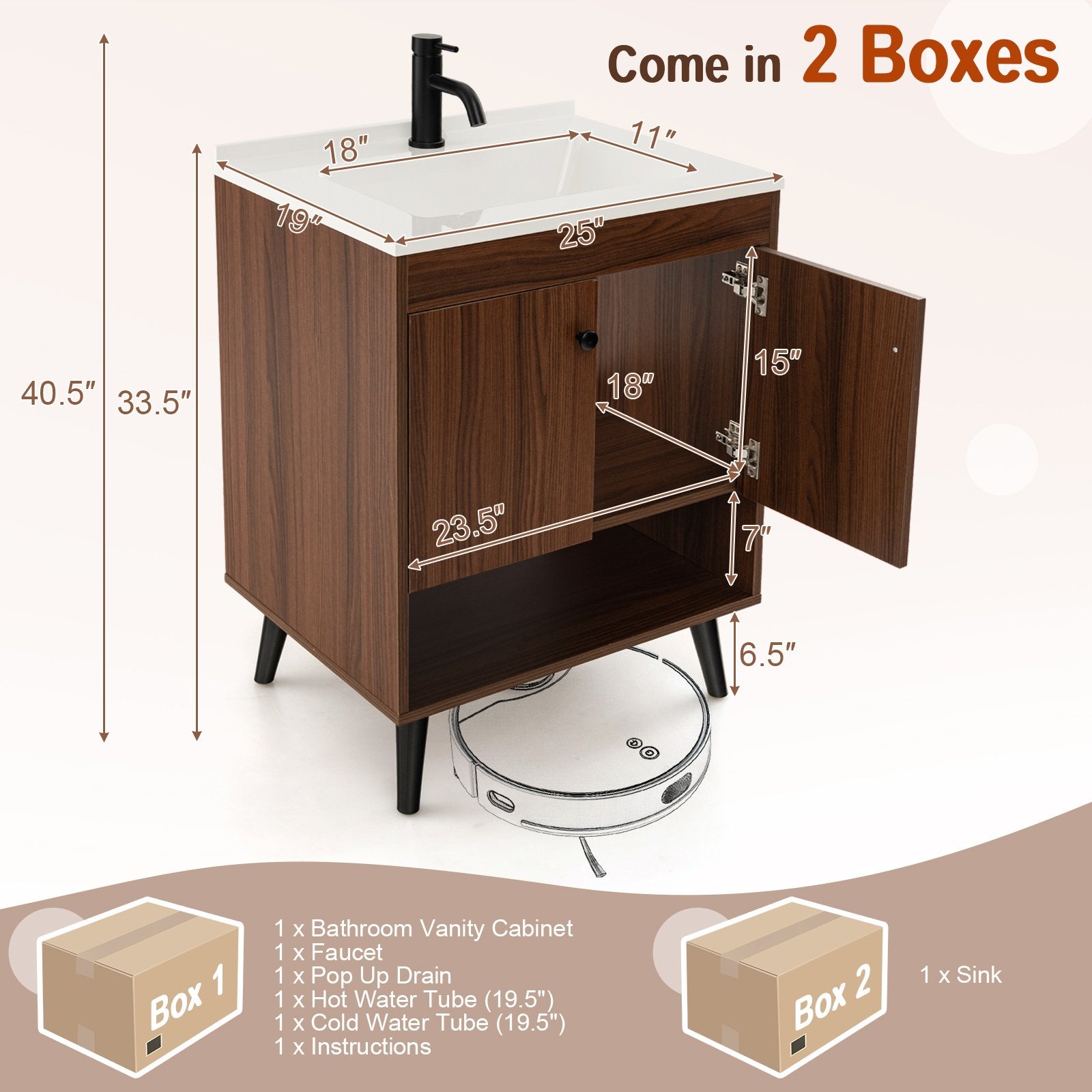 25 Inch Wooden Bathroom Storage Cabinet with Sink-Walnut