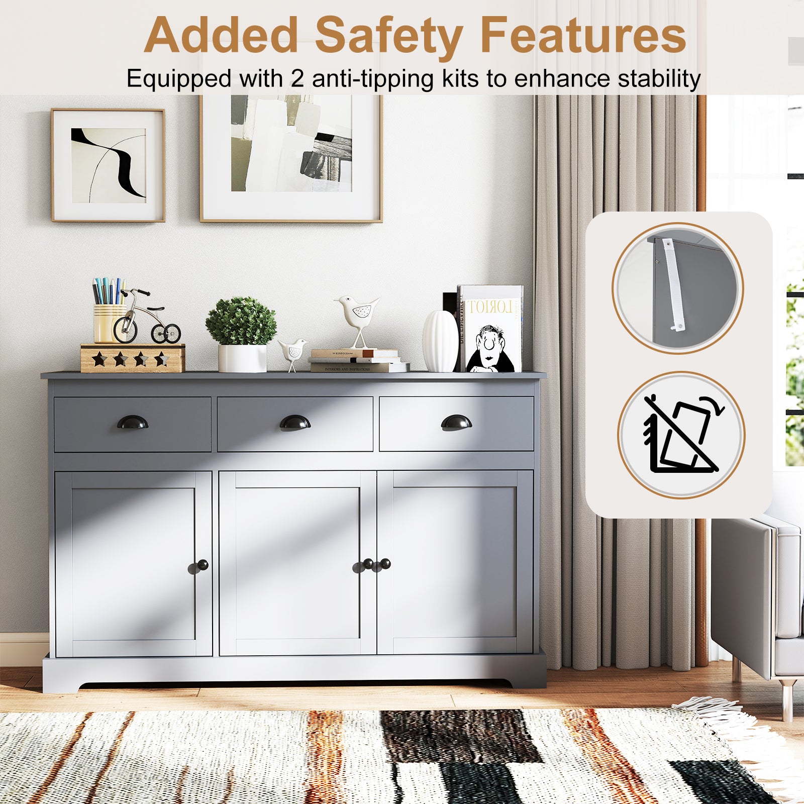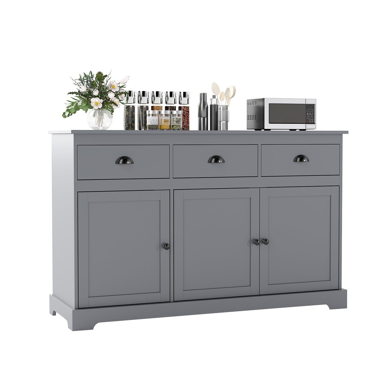 3 Drawers Sideboard Buffet Storage with Adjustable Shelves-Gray
