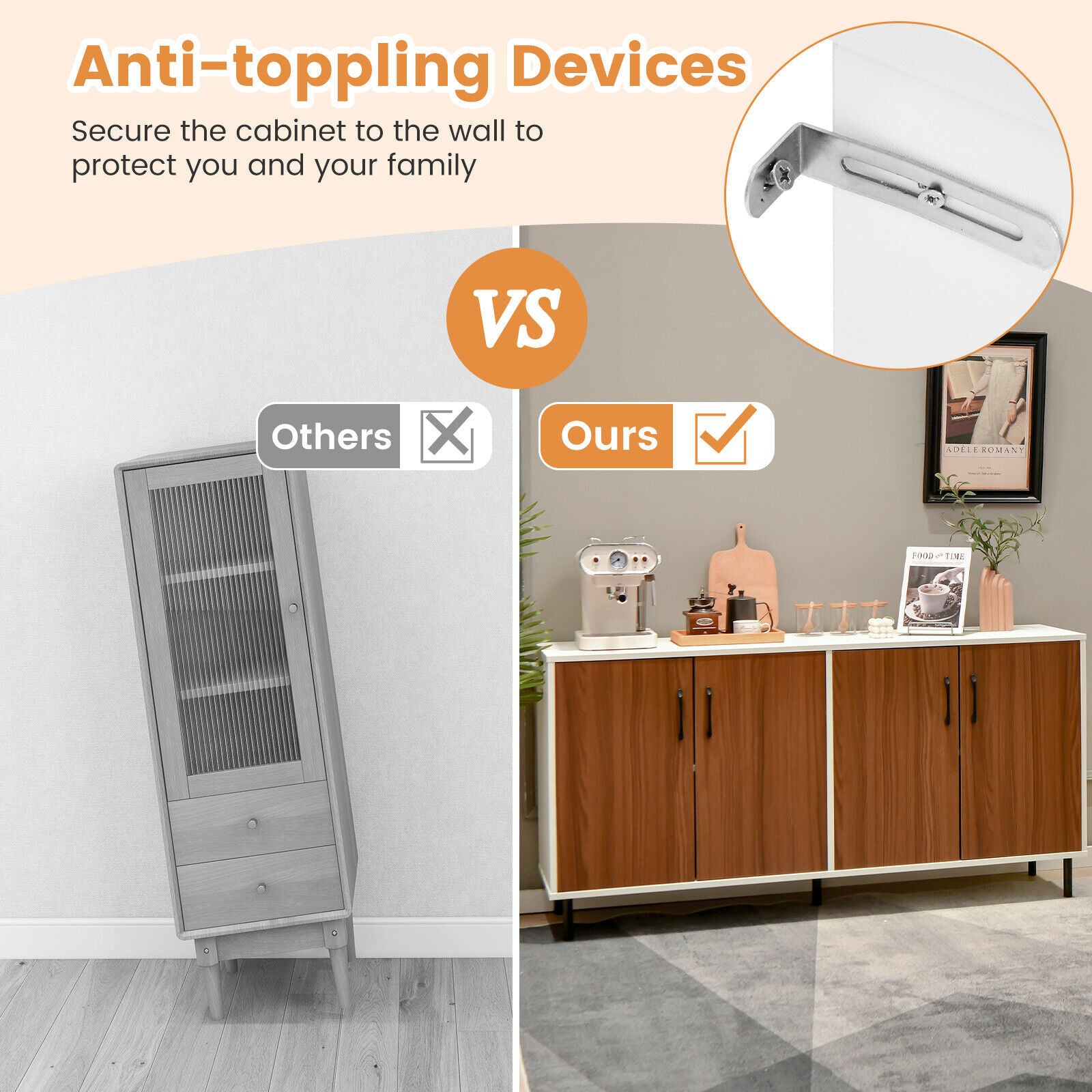 Modern Practical Design: The storage cabinet with contemporary style simple yet elegant is an ideal piece to breathe new life into any room or space. Well-made details of the buffet cabinet such as raised support legs anti-slip foot pads flexible metal hinges and convenient handles take the practicality to high level.