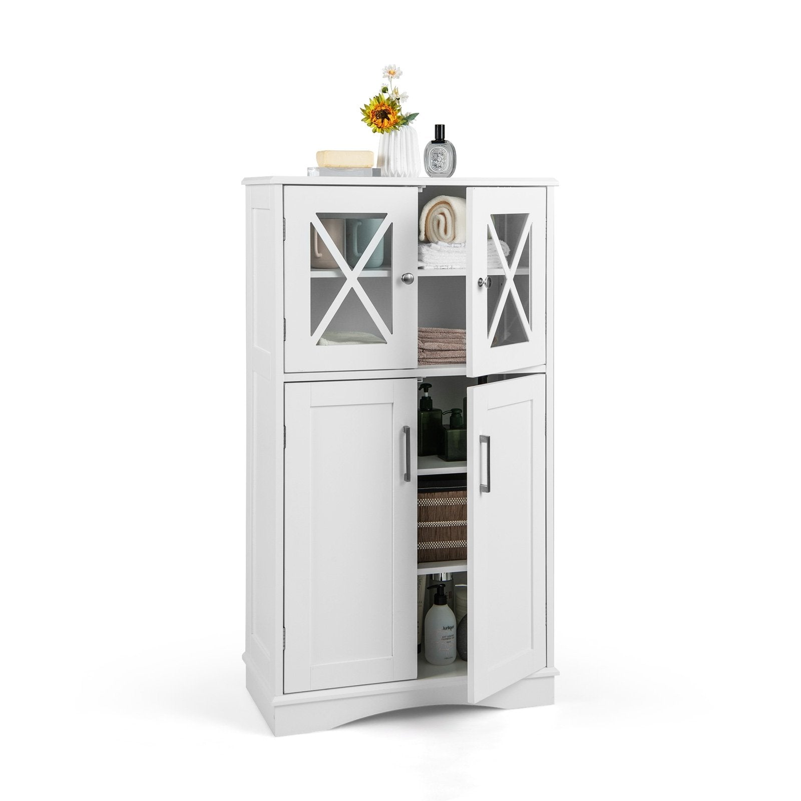 4 Doors Freeestanding Bathroom Floor Cabinet with Adjustable Shelves-White