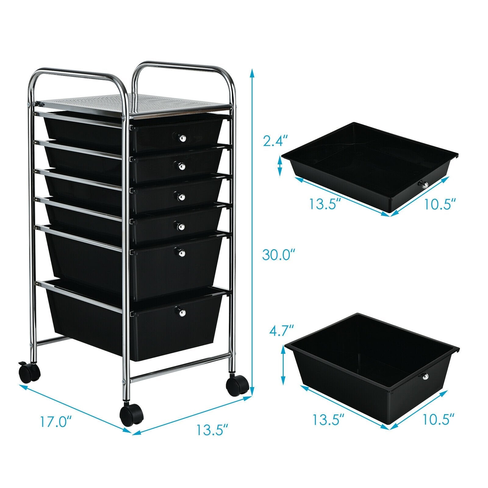 This 6 drawers rolling storage cart with 2 big drawers and 4 small drawers is ideal in your office home school and garage.