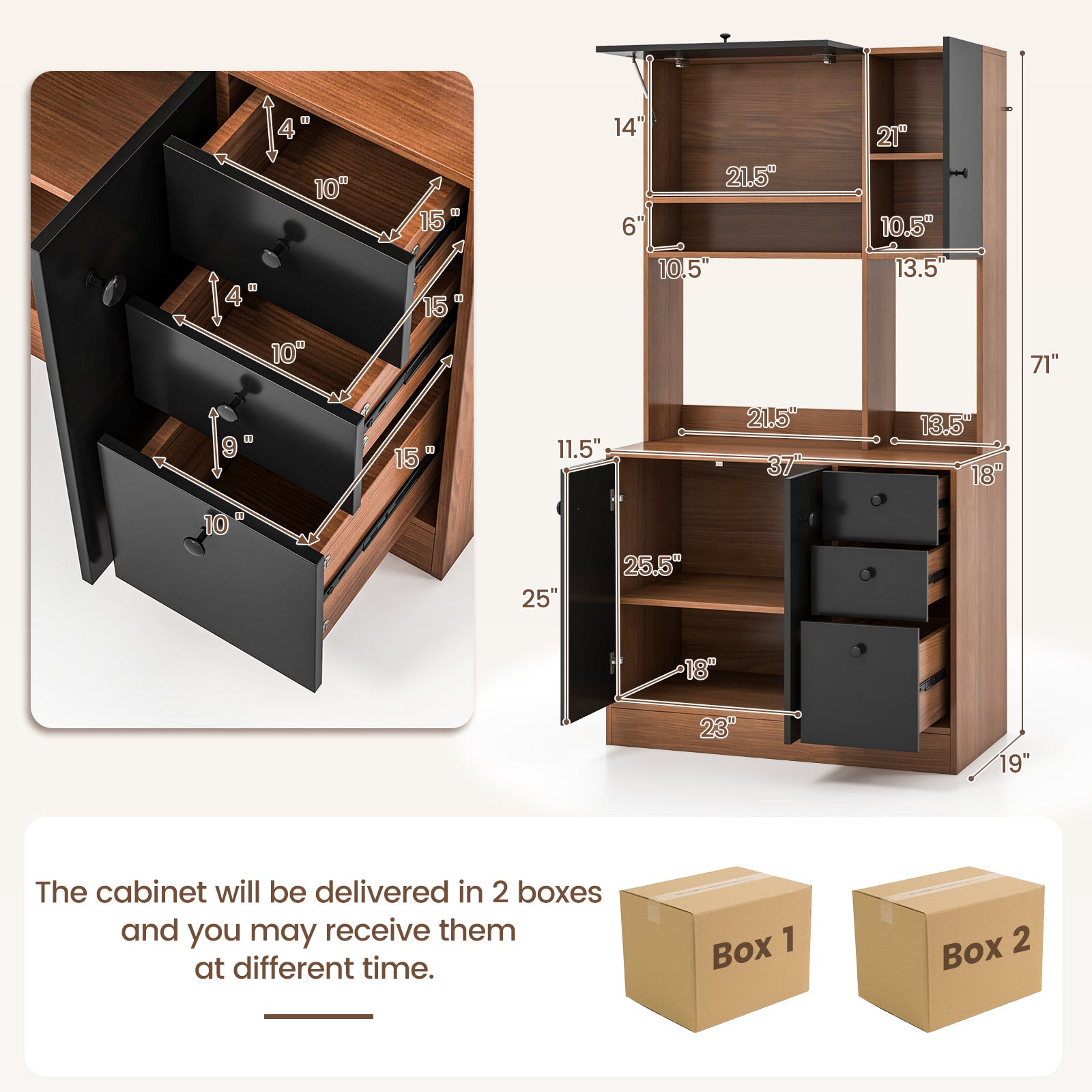 71 Inch Kitchen Pantry with 3 Storage Cabinet and 3 Deep Drawers-Walnut