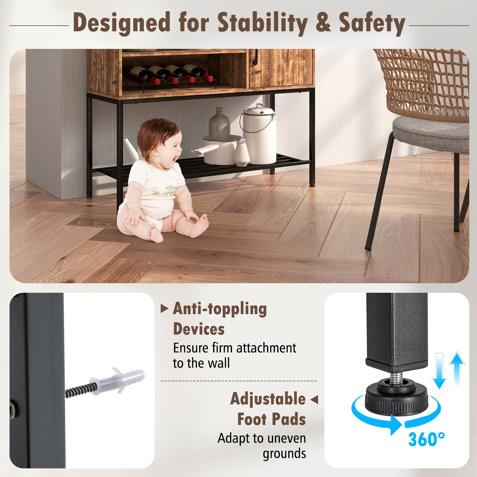 Buffet Sideboard Coffee Bar Cabinet with Power Outlets and USB Ports-Rustic Brown