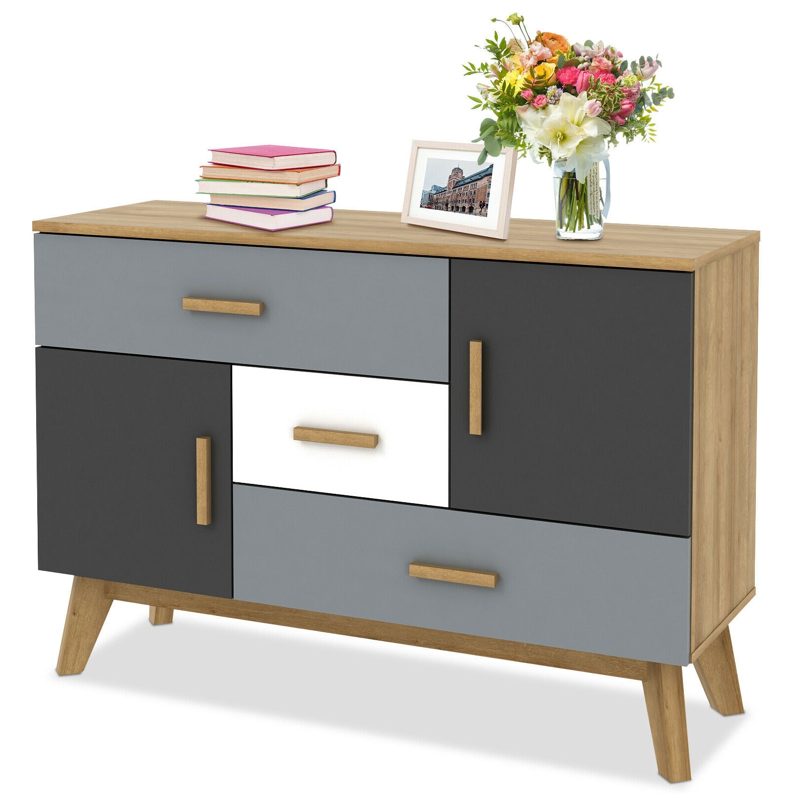 Safety Use and Humanized Details: Different from other regular storage cabinet this floor cabinet is equipped with anti-tipping device to avoid wobbling. You can fix the cabinet to the wall firmly to create a safe environment for family use. Besides each drawer and door come with convenient handle for easy access.