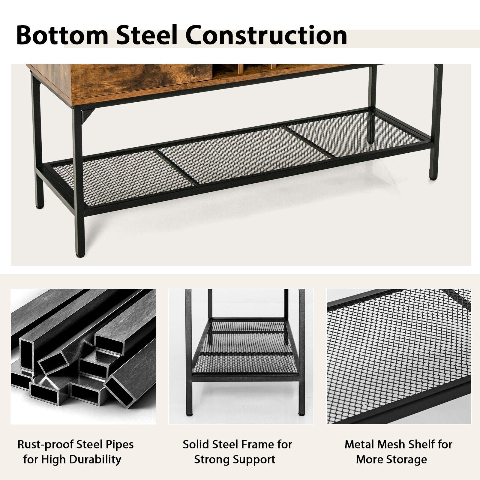 Industrial Kitchen Buffet Sideboard with Wine Rack and 2 Doors-Rustic Brown