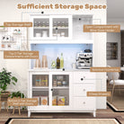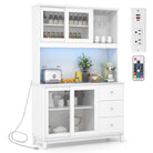 Kitchen Pantry Storage Cabinet Kitchen Hutch with LED lights and Power Outlet-White