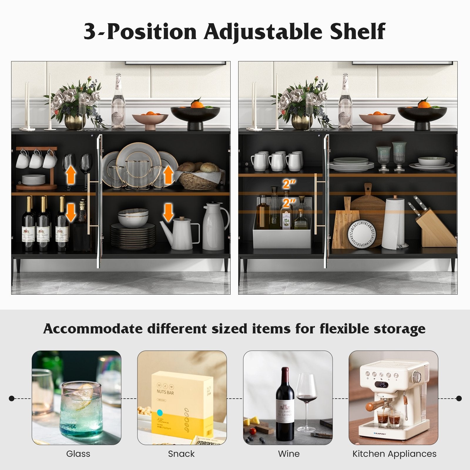 3-Position Adjustable Shelf: Our sideboard features 2 adjustable shelves and each of them can be adjusted in 3 positions (2” for each level). Moreover the shelves can be detached separately so you have the flexibility to arrange and display your personal belongings of different sizes.