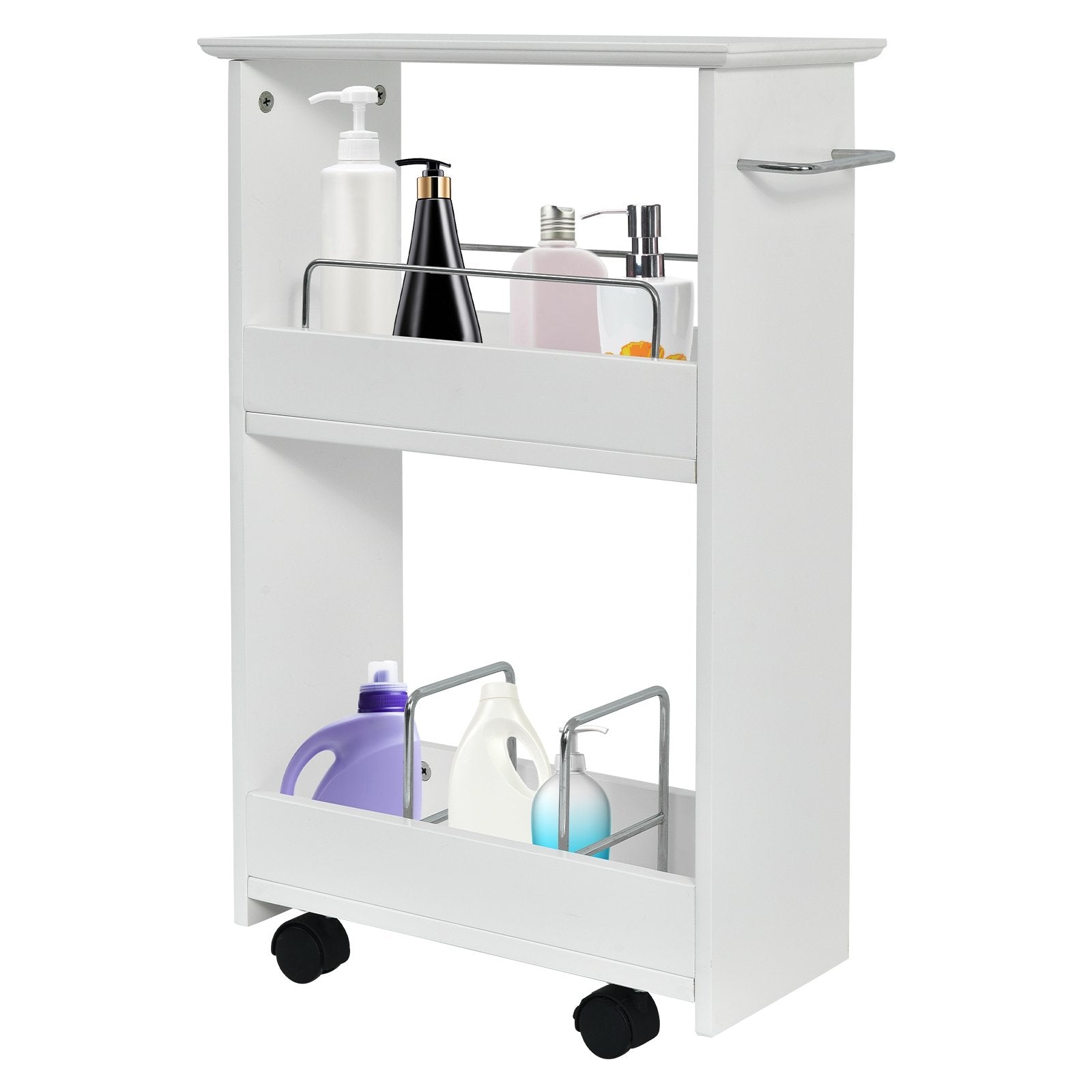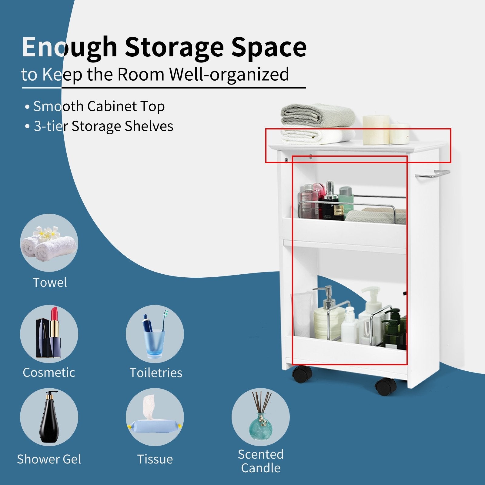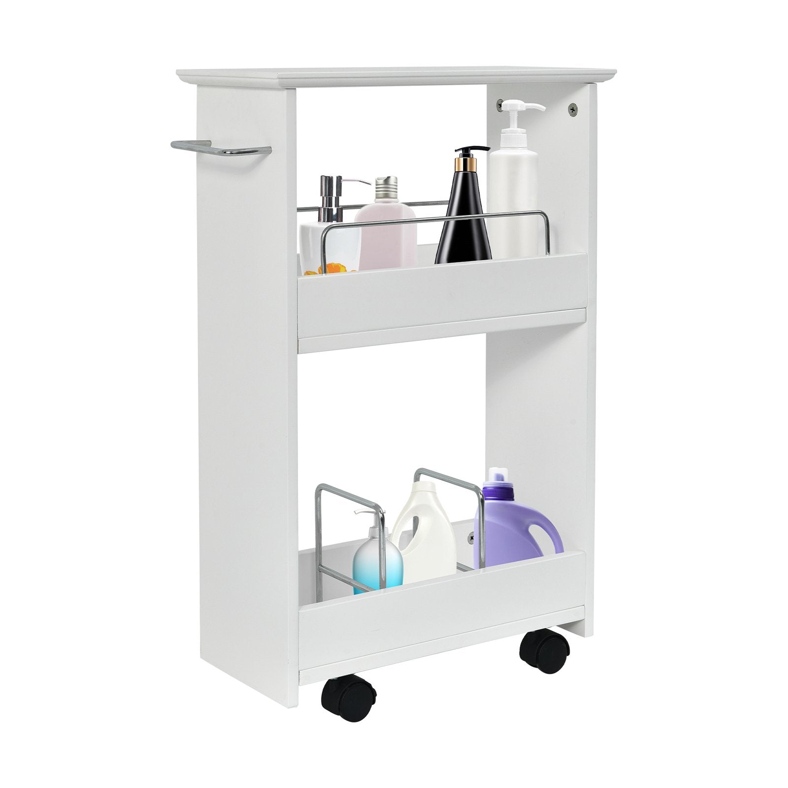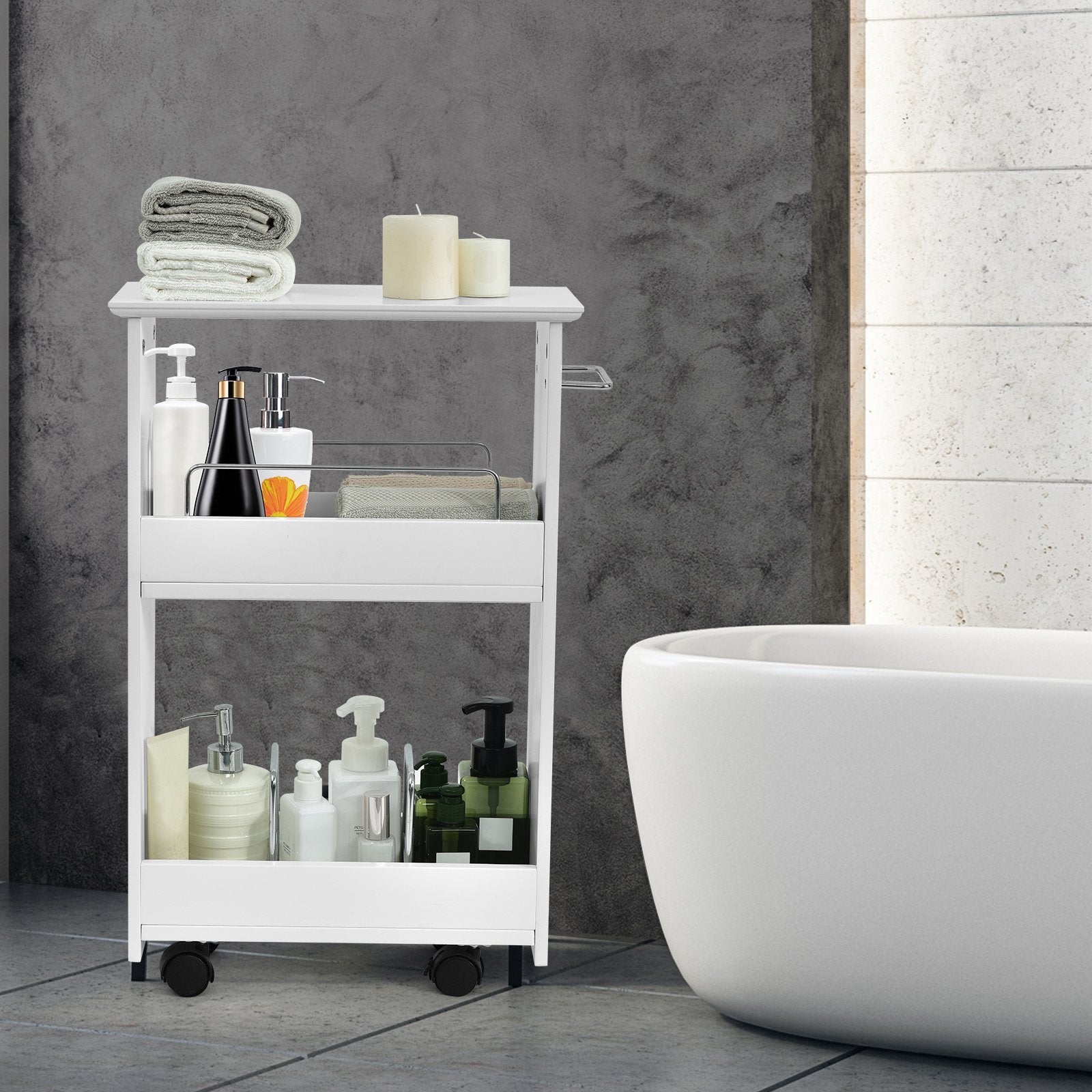 Slim Rolling 3-Tier Bathroom Mobile Shelving Cabinet with Handle