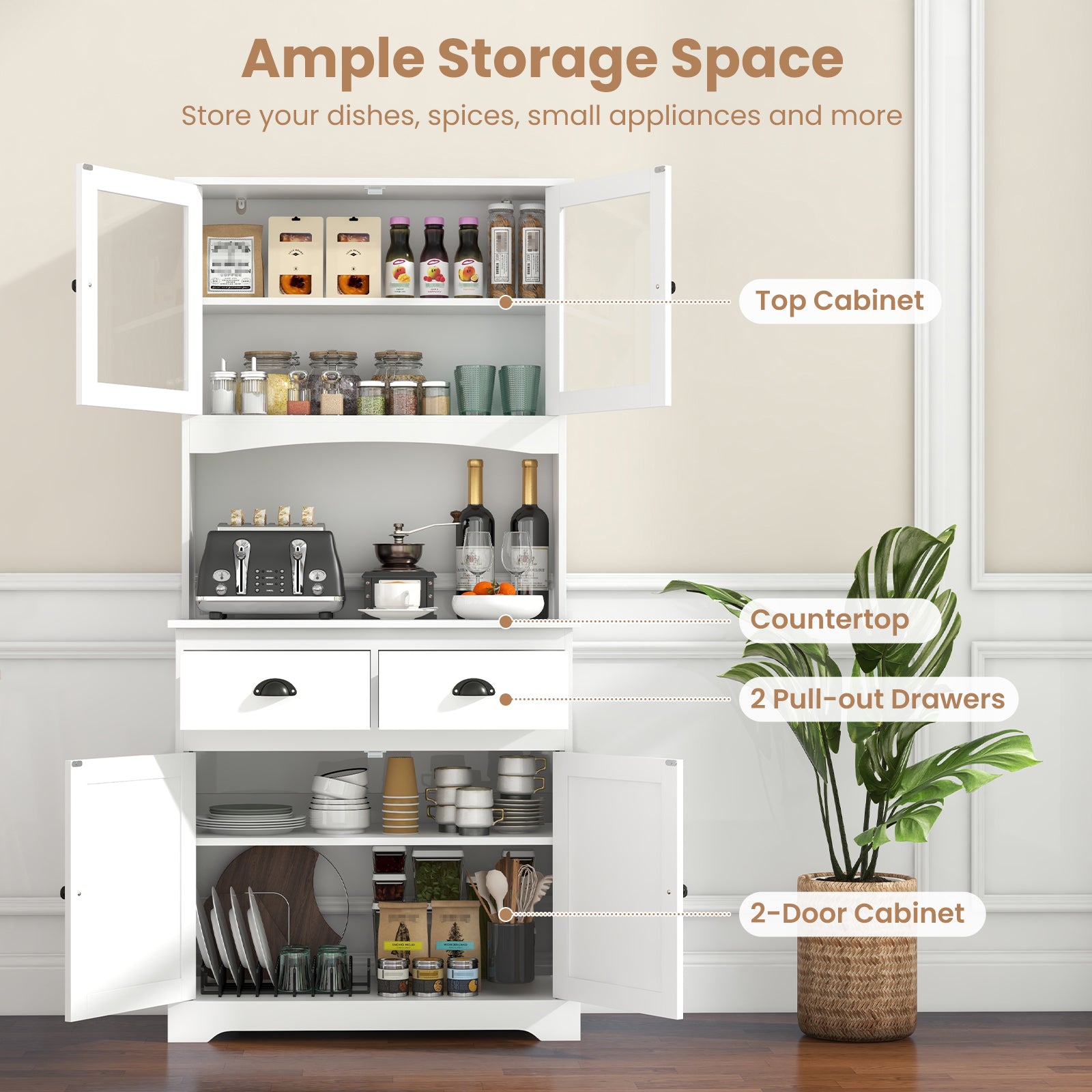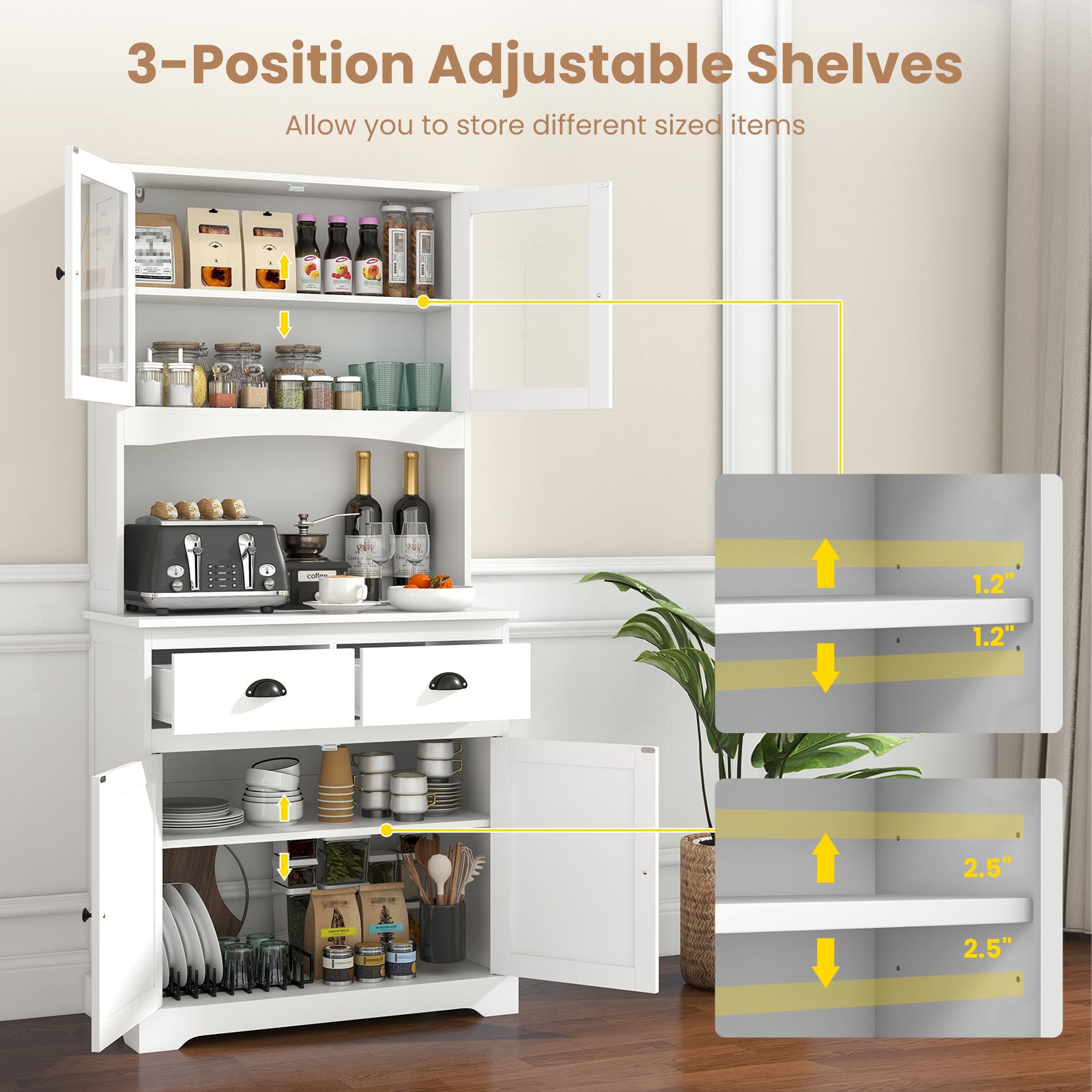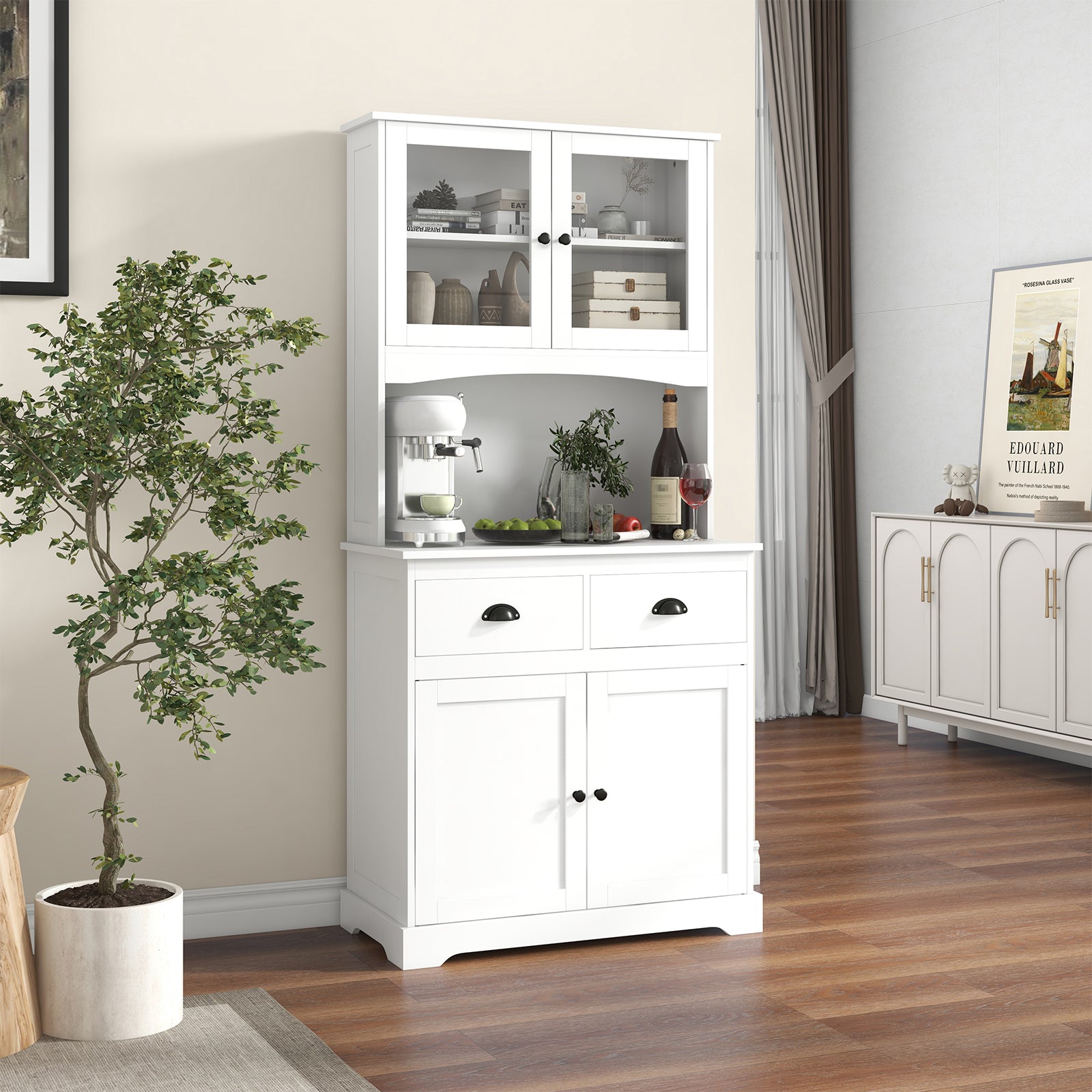 Tall Sideboard with 2 Drawers and Adjustable Shelves-White