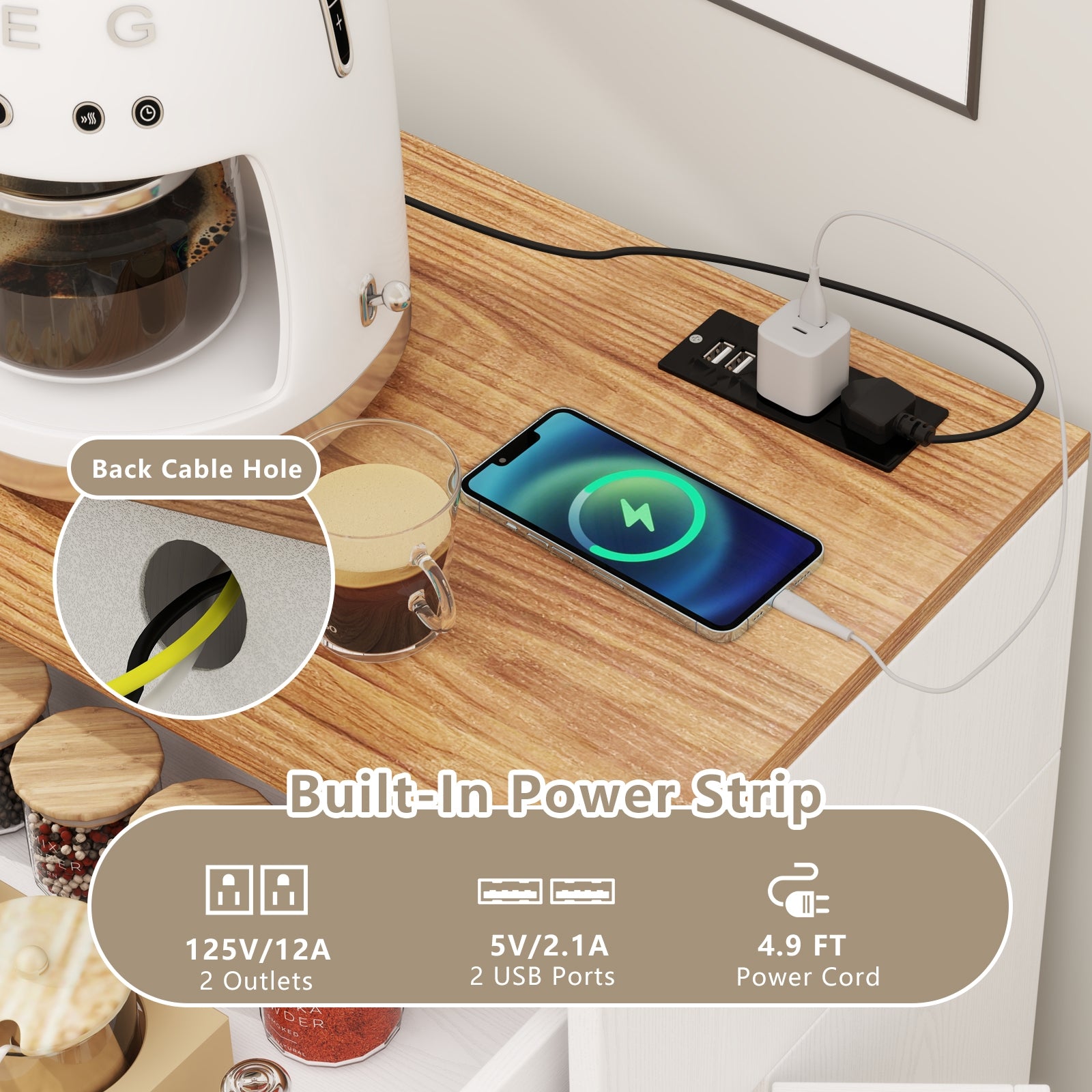 Tilt Out Trash Can Cabinet with Outlets and Adjustable Shelf-White