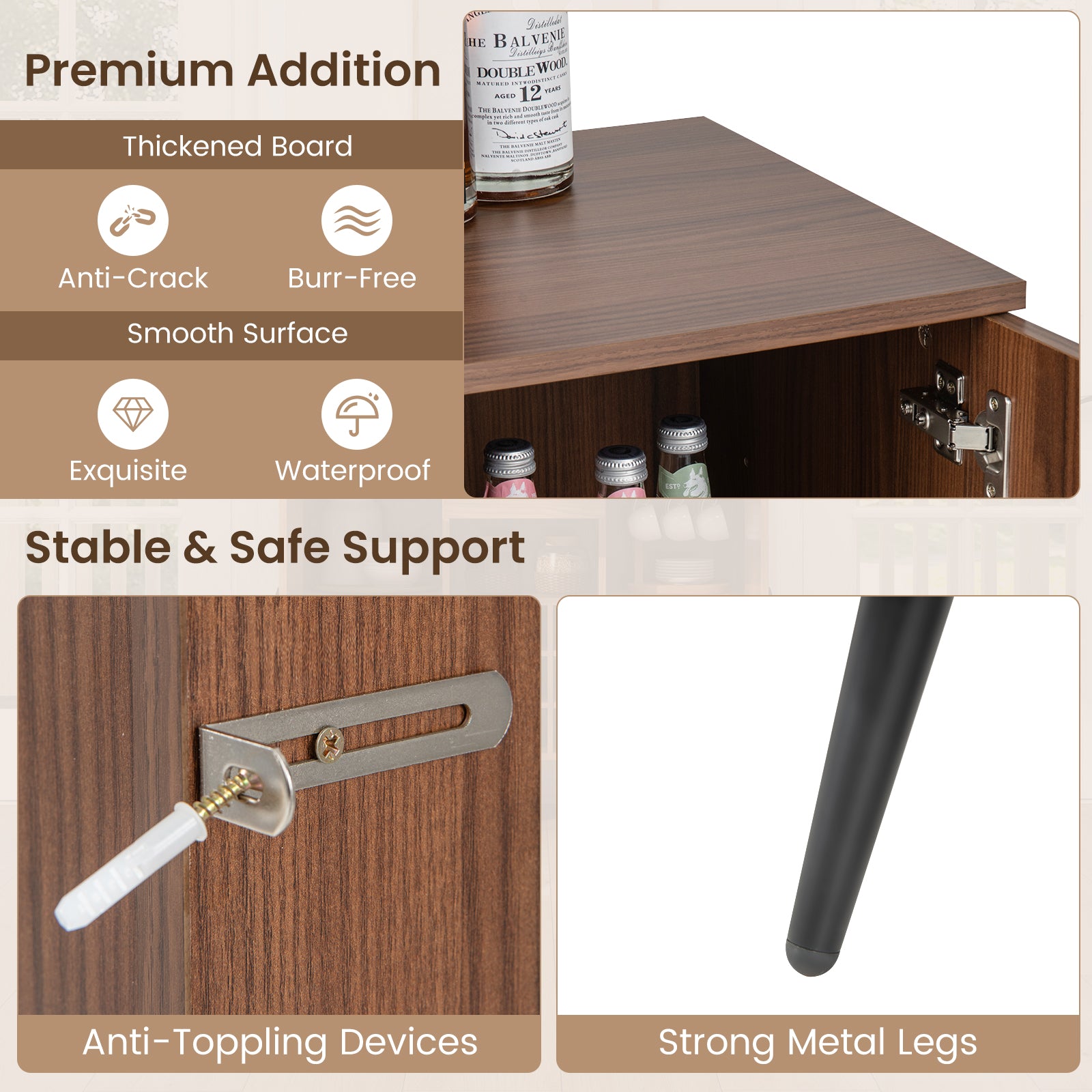 Wine Storage Cabinet Buffet Sideboard with Adjustable Shelf and Sliding Door-Brown