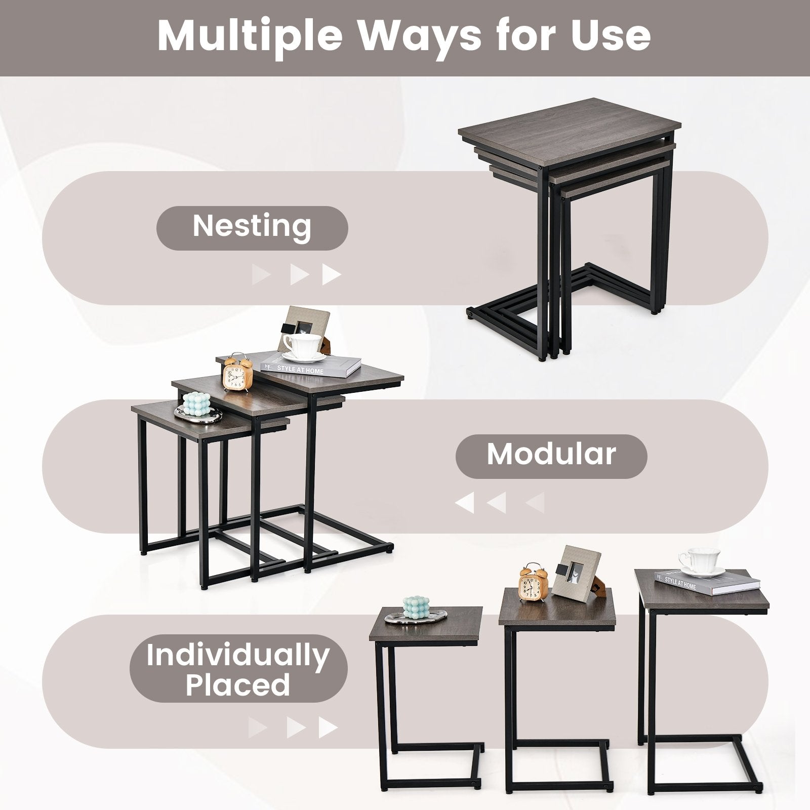 - Versatile and Flexible Table: These multifunctional end tables could match perfectly with any decor theme with simple shape. Three different sizes are suitable for various heights sofas or beds. C-shape helps you reach the laptop books magazines coffee or fruits beside you with the tables.