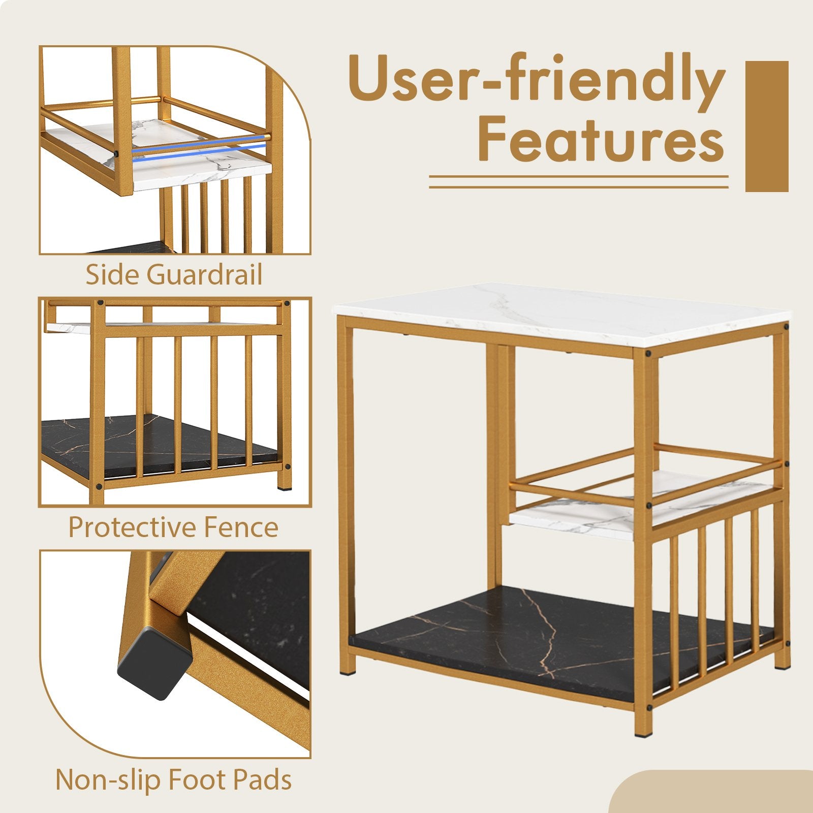 3-Tier Multi-function Marble End Table with Storage Shelf-Golden