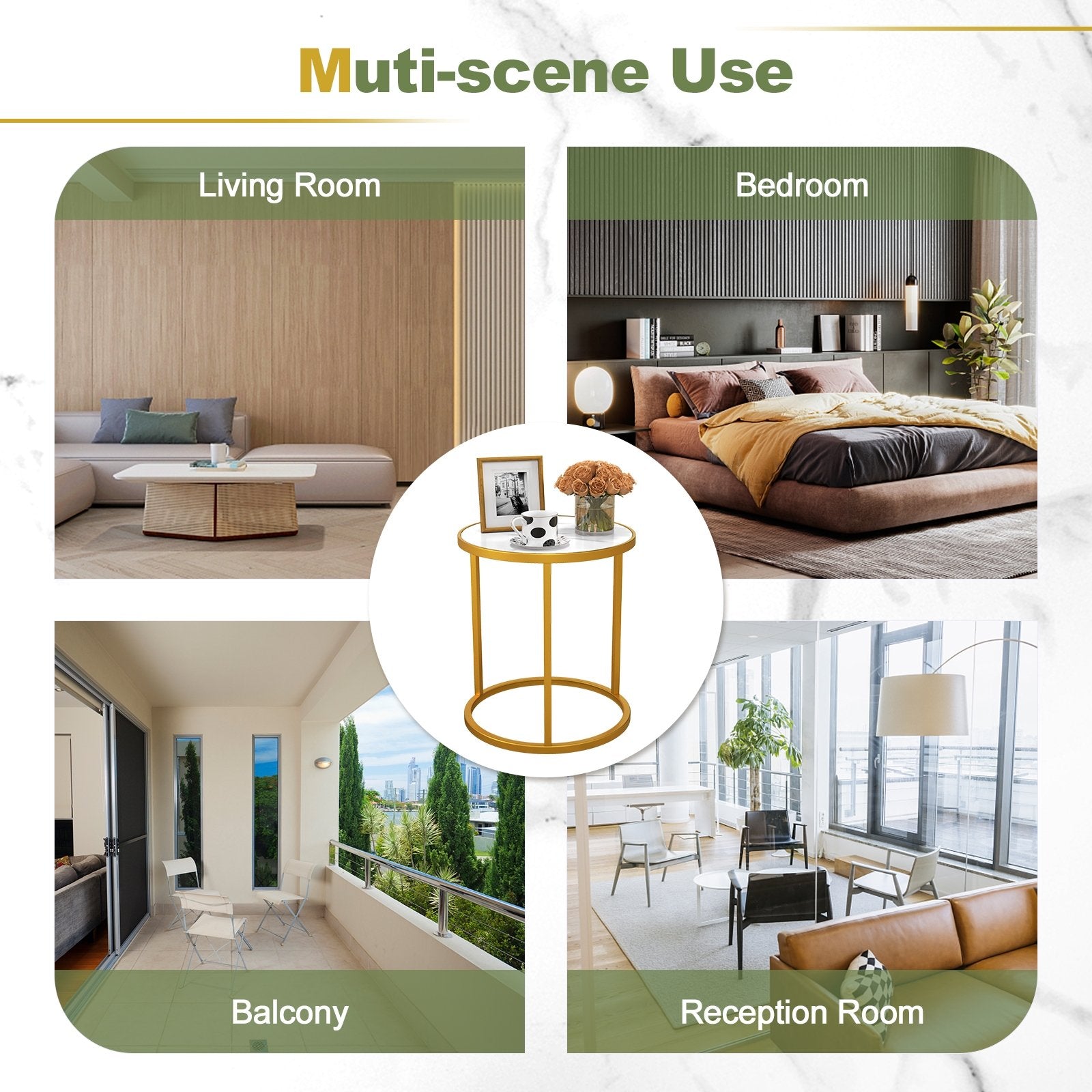 Marble Top Round Side Table 16-Inch End Table with Golden Metal Frame-2 Pieces
