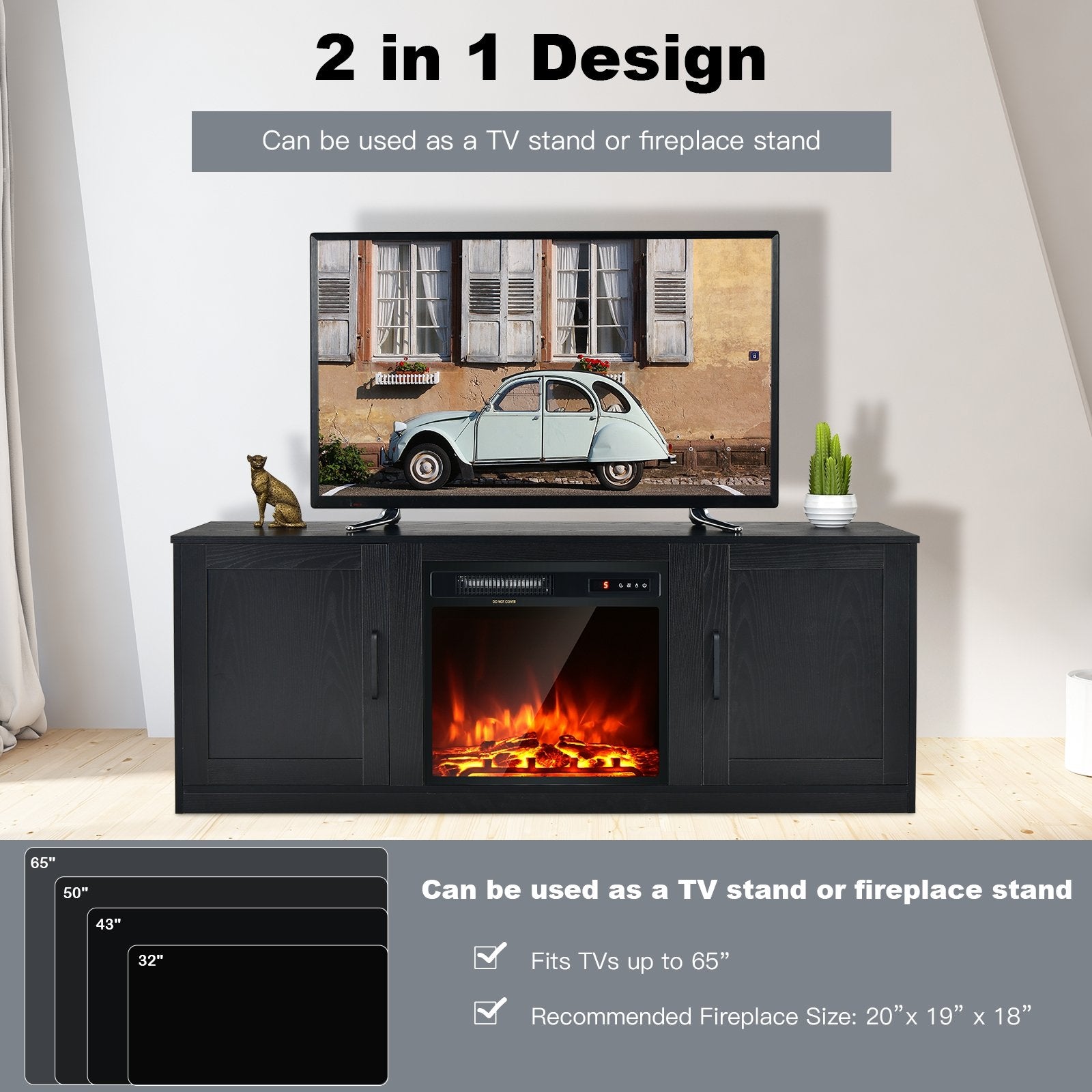 - -Can be used as a TV stand or fireplace stand according to your needs