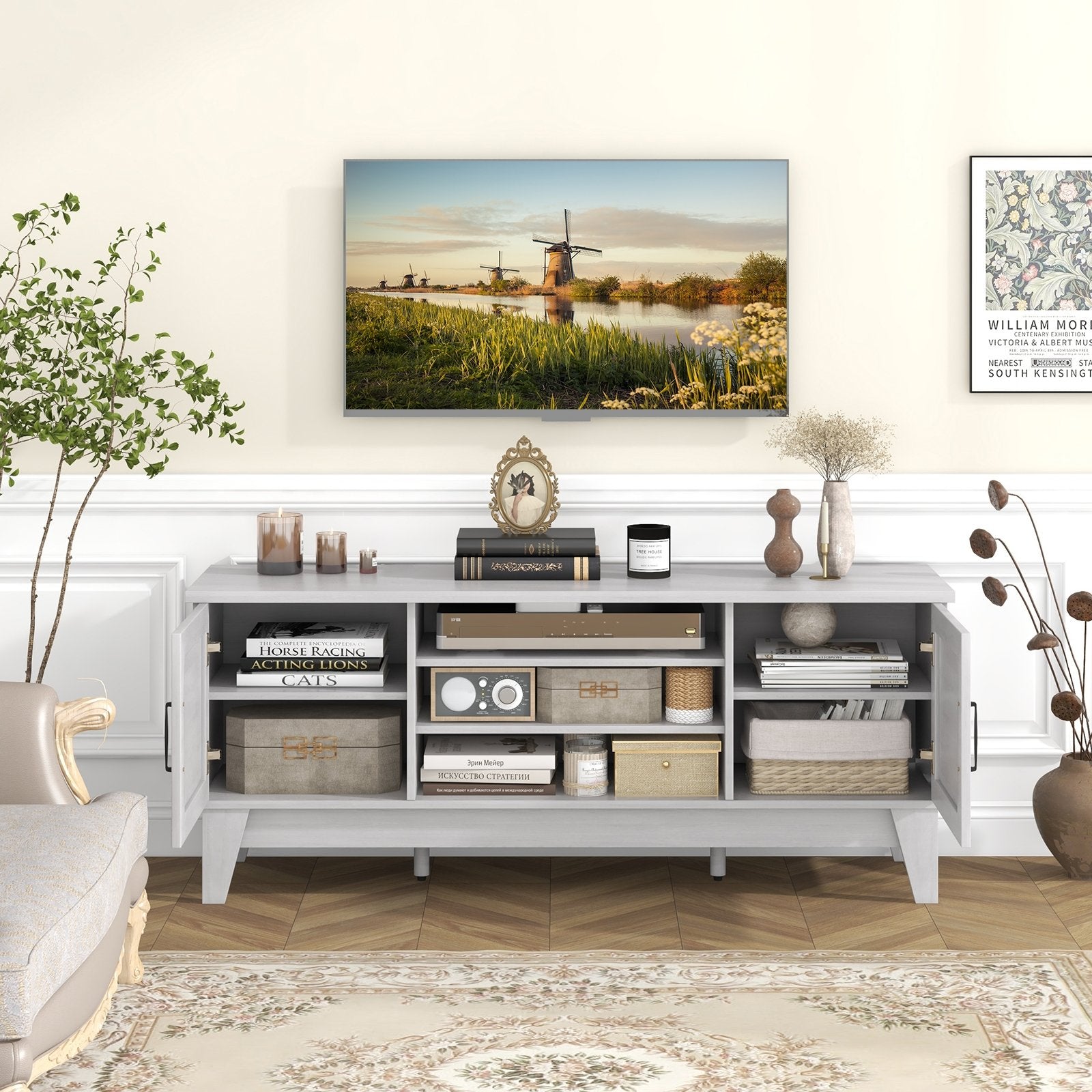 Farmhouse TV Stand for TVs Up to 65 Inches with 2 Barn Door Cabinets-Gray