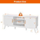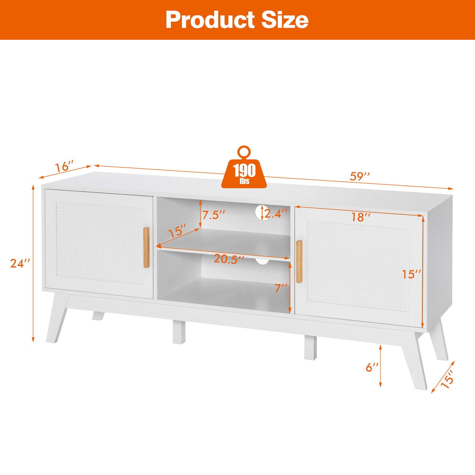 TV Stand Entertainment Media Console with 2 Rattan Cabinets and Open Shelves-White
