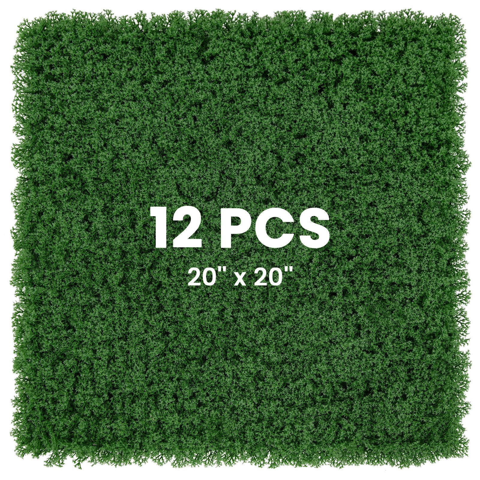 12 Pieces 20 x 20 inches Artificial Grass Wall Panels for Garden Yard Balcony-Green