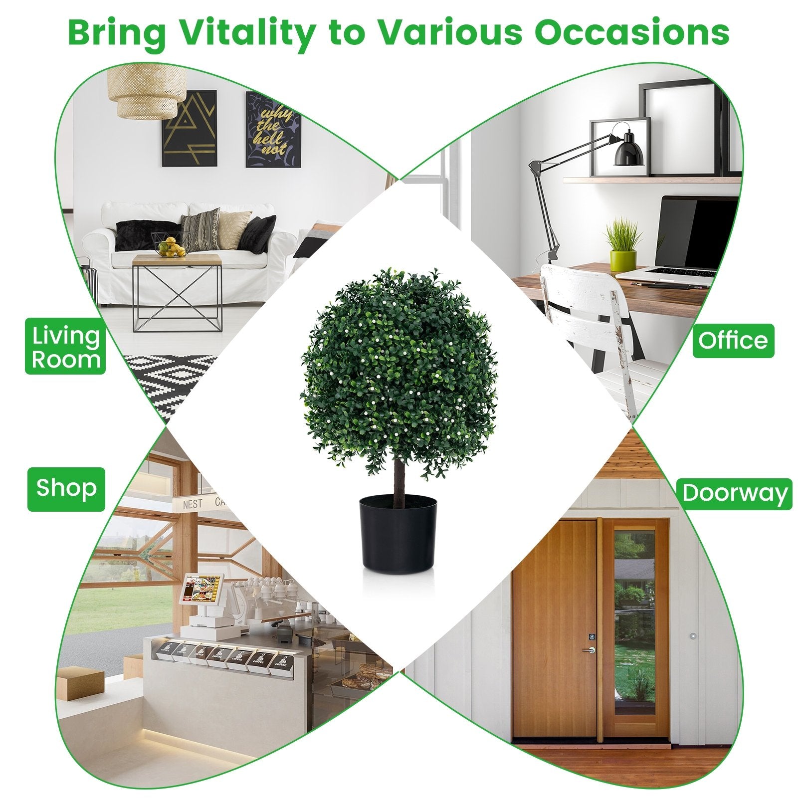 Artificial Boxwood Topiary Ball Tree Faux Bushes Ball Plants with UV Rated Leaves