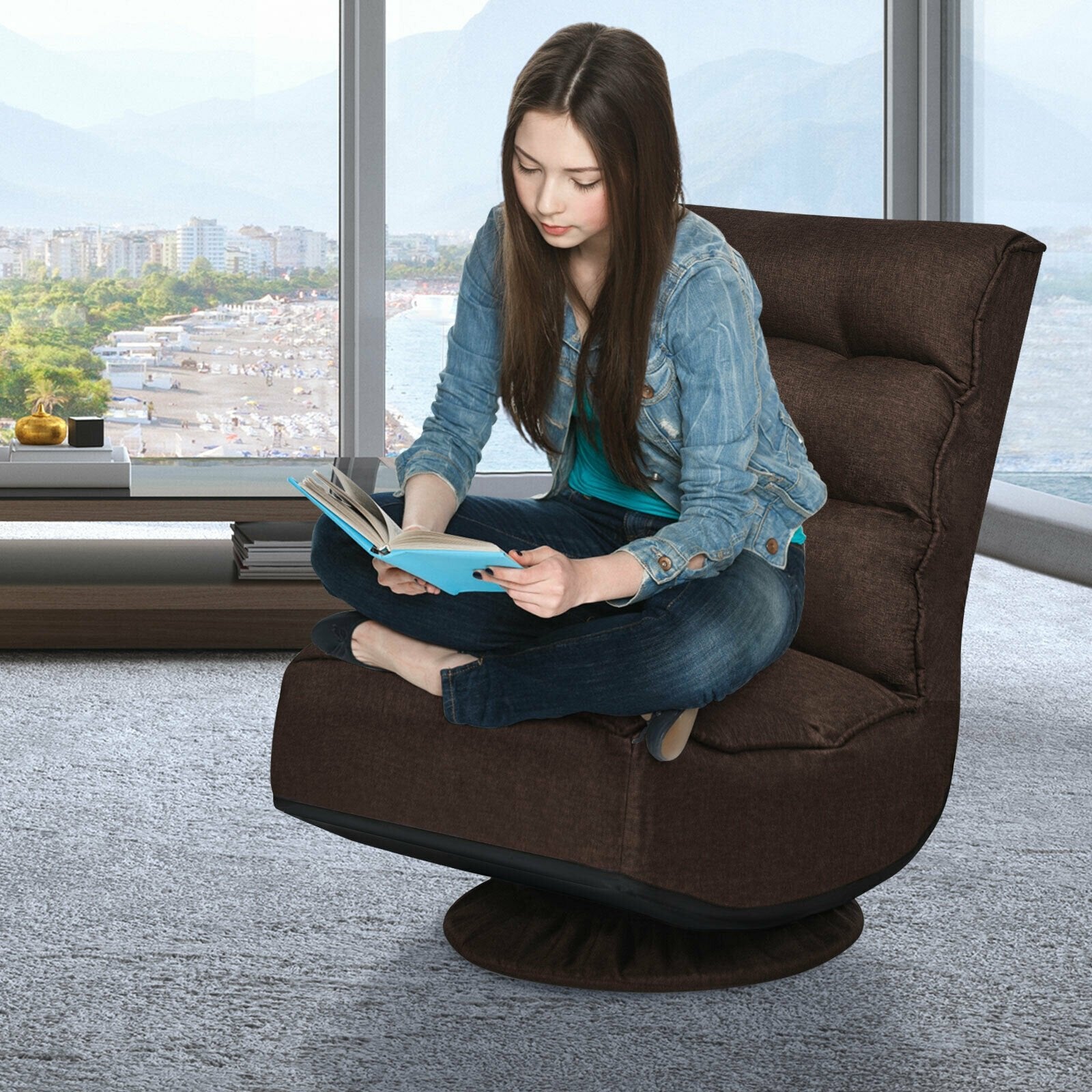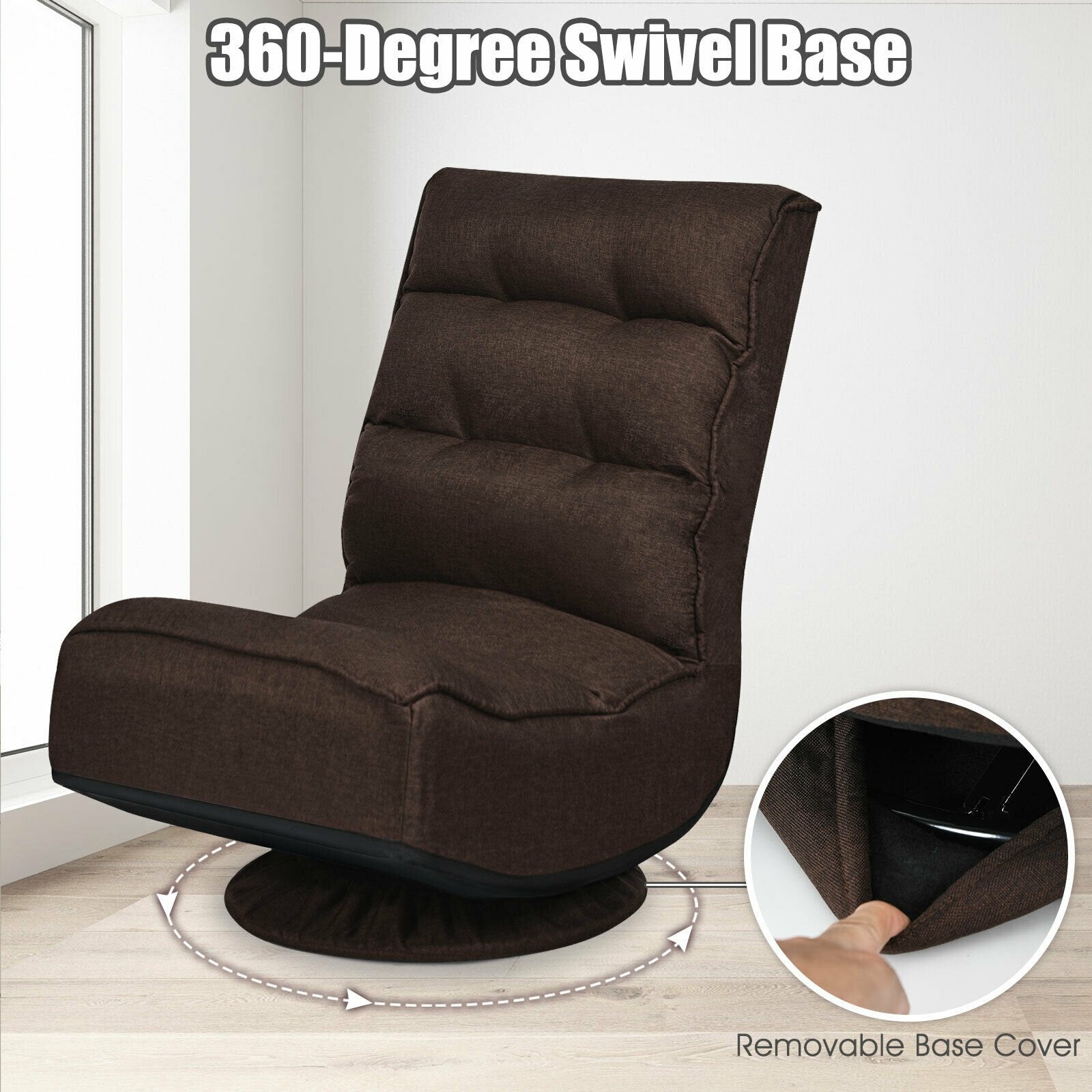Sit in comfort with our adjustable swivel floor chair. This folding floor gaming chair is filled with high density sponge that is soft to touch. Compared with other common floor chairs our uniquely designed floor gaming chair features 360-degree swivel design that will add much fun to your leisure time. 5 adjustable backrest angles enable you to find the most comfortable sitting position. Besides this swivel floor chair is equipped with a removable base cover to protect your floor from scratching. It can be easily taken off for cleaning when getting dirty. The backrest of this chair is also foldable for easy storage. With its simple and modern appearance it will perfectly match with any home styles.