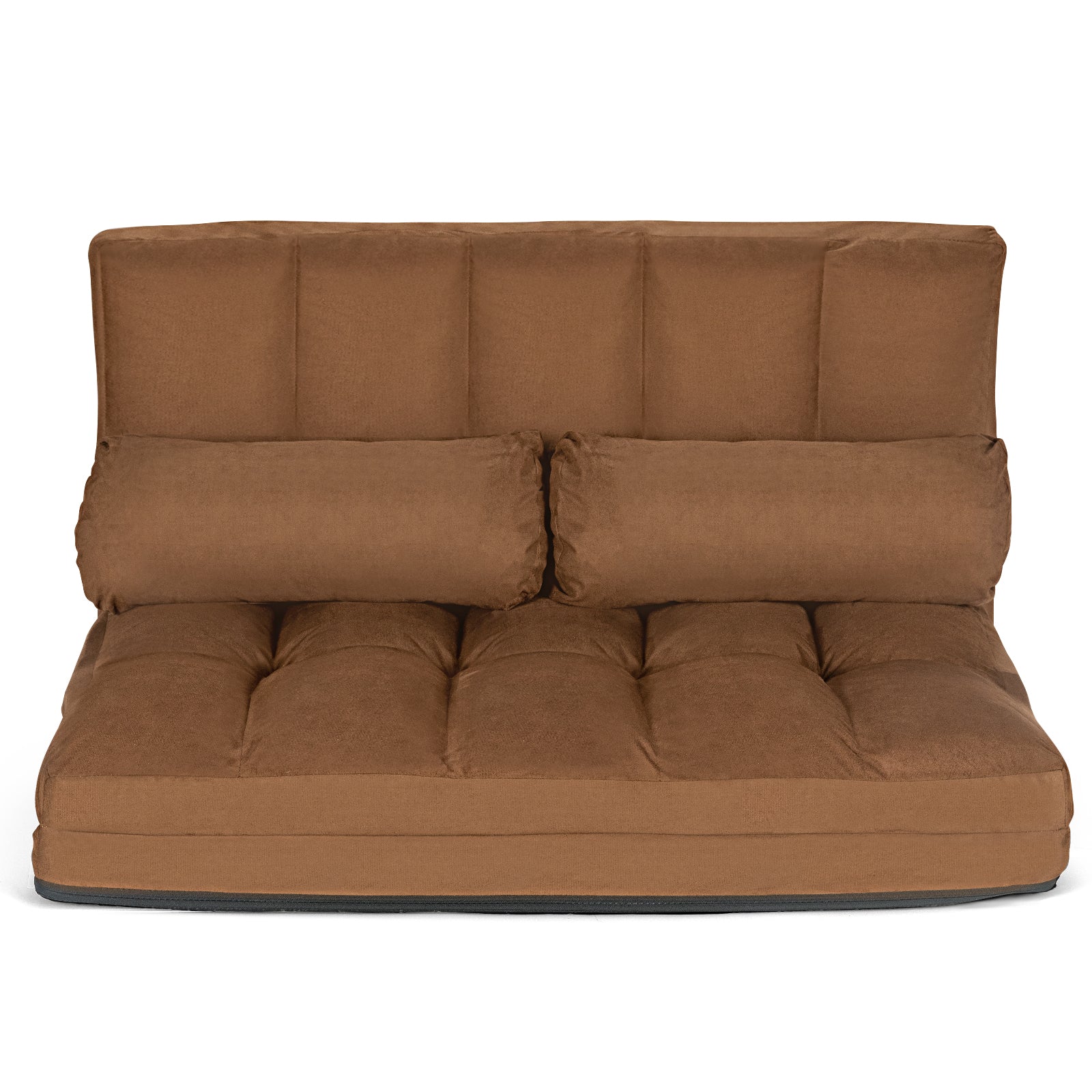 Foldable Floor 6-Position Adjustable Lounge Couch-Brown