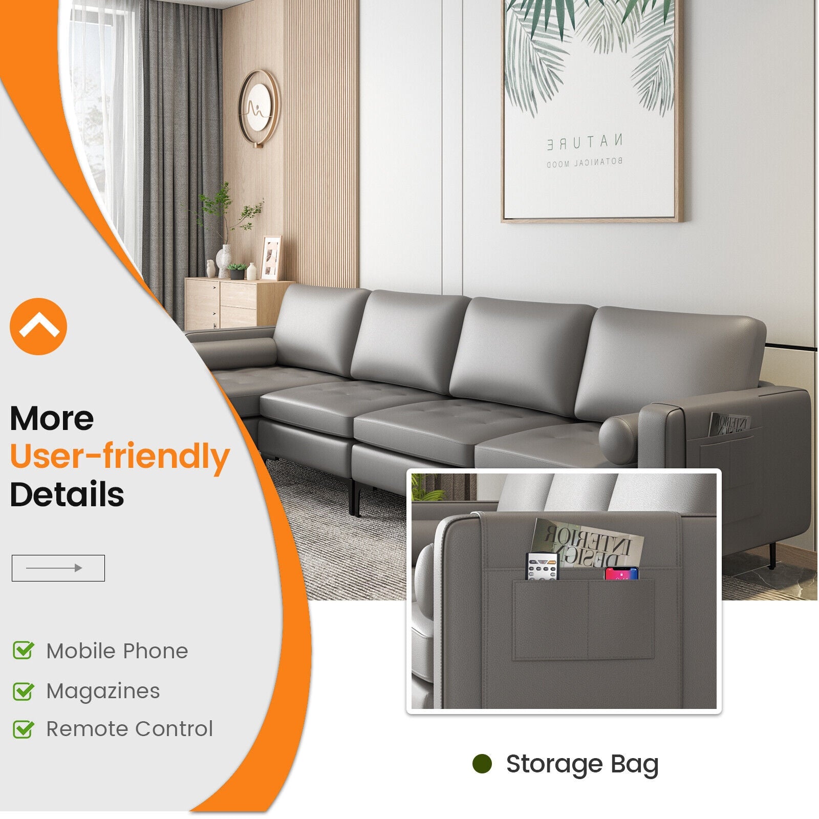 Extra Large Modular L-shaped Sectional Sofa with Reversible Chaise for 4-5 People-Gray