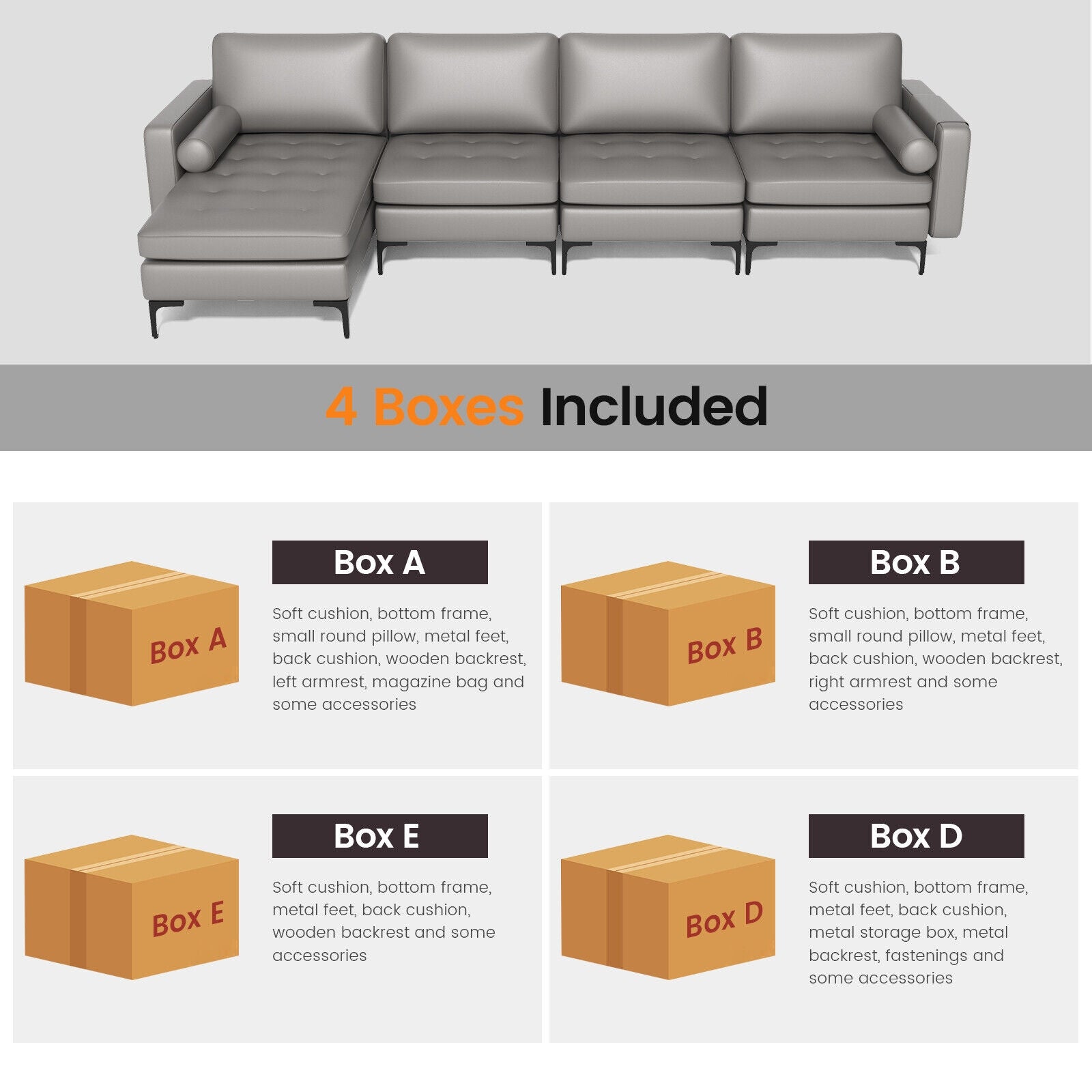 Modular L-shaped 4-Seat Sectional Sofa with Reversible Chaise and 2 USB Ports-Gray