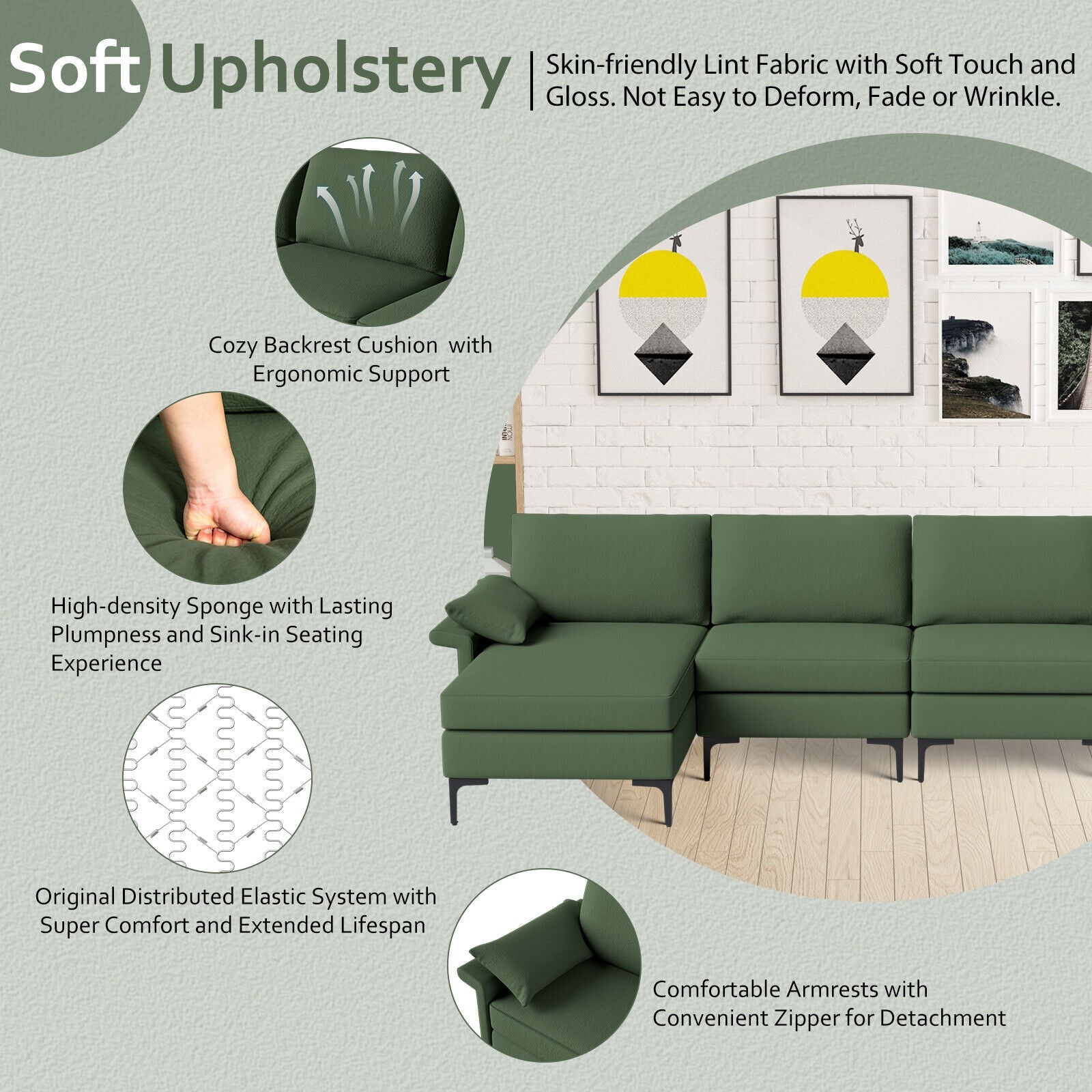 Extra Large Modular L-shaped Sectional Sofa with Reversible Chaise for 4-5 People-Army Green
