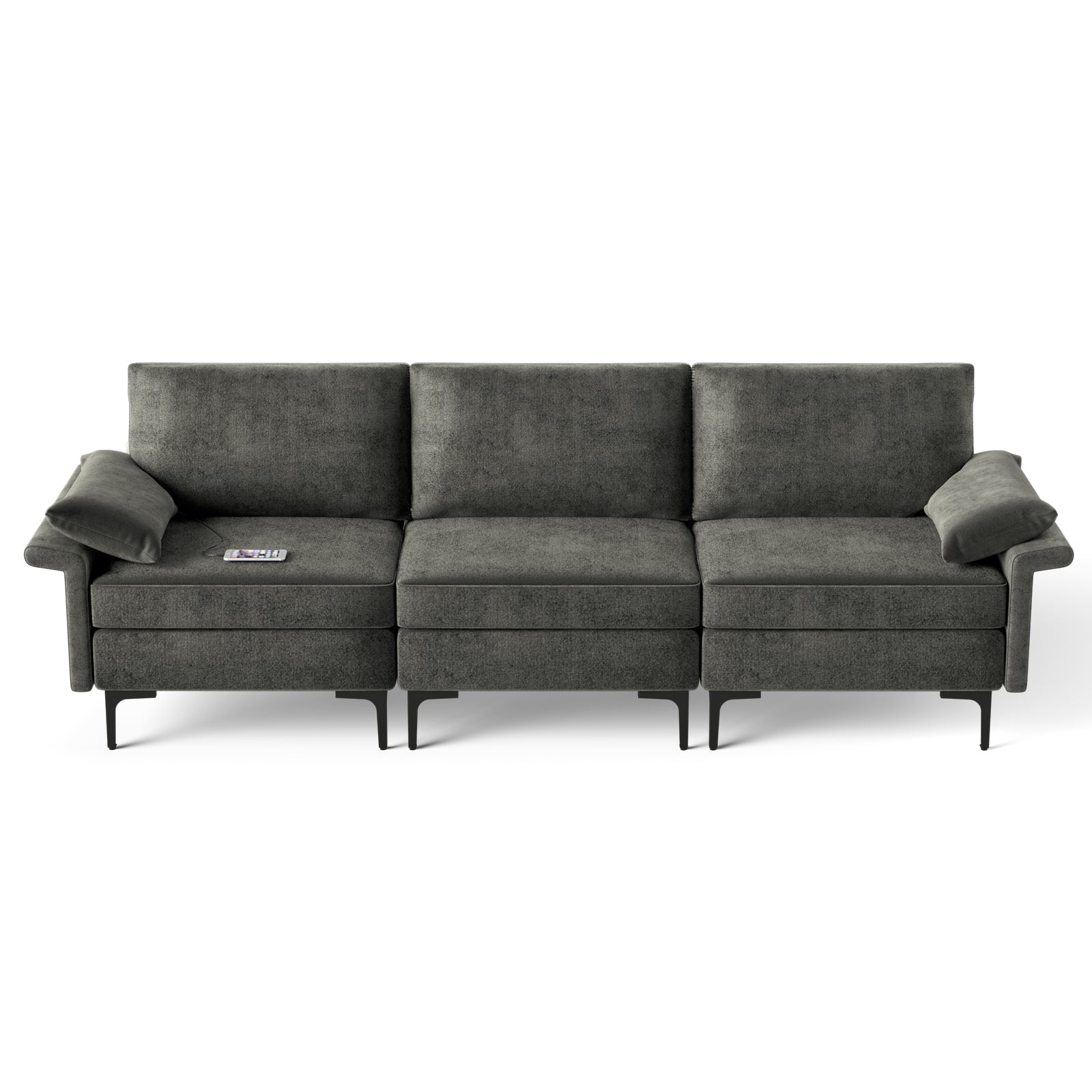 Large 3-Seat Sofa Sectional with Metal Legs and 2 USB Ports for 3-4 people-Silver