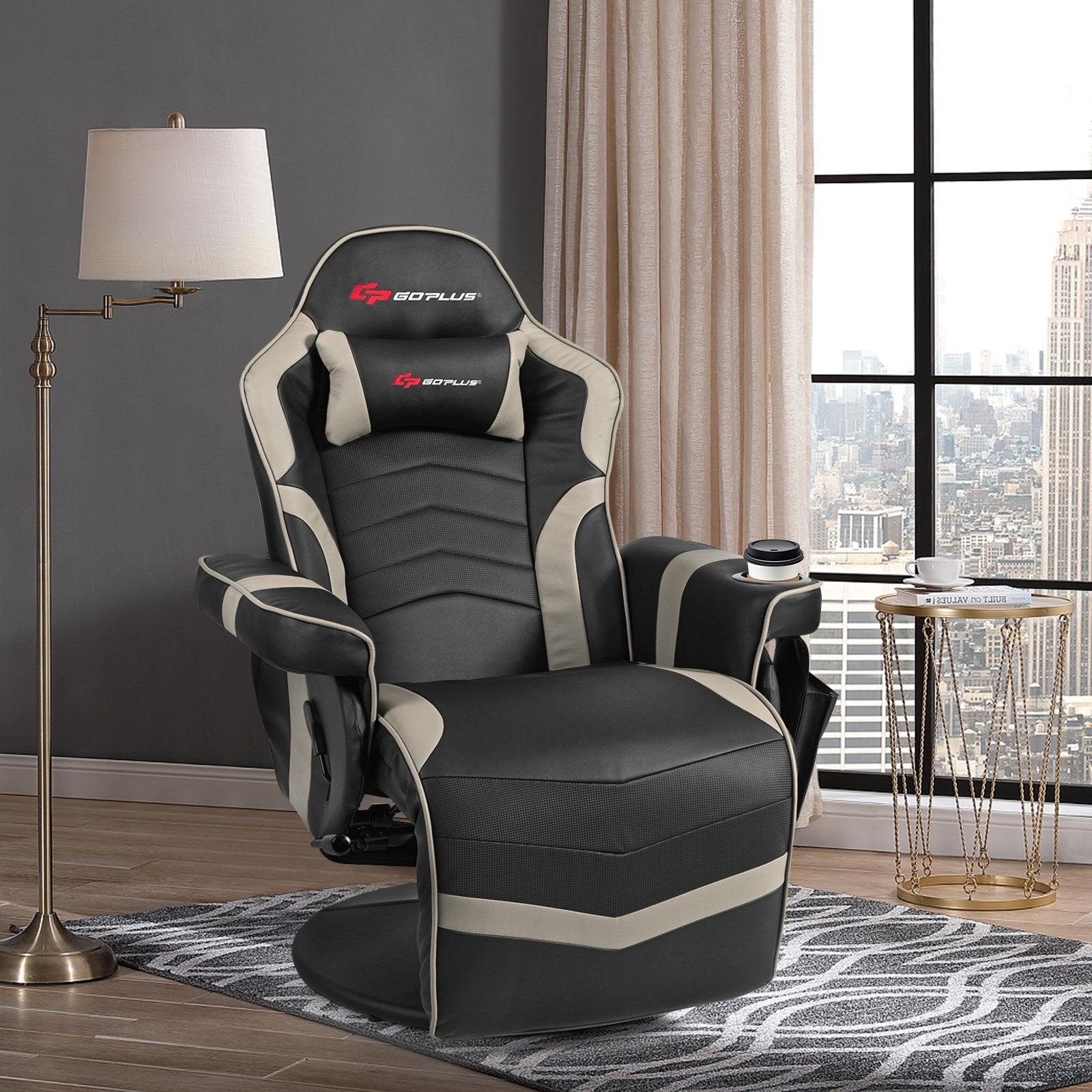 Ergonomic High Back Massage Gaming Chair with Pillow-Gray