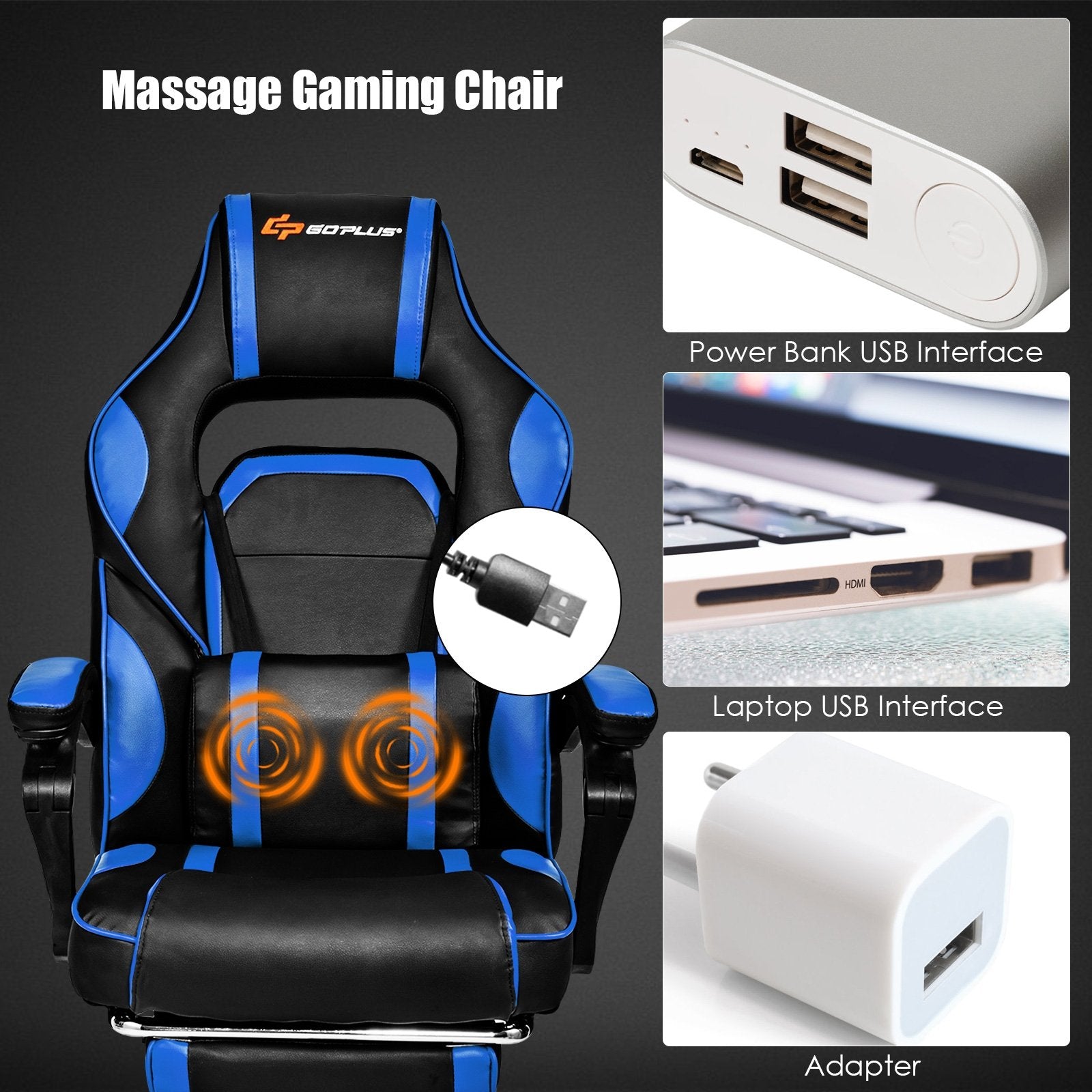 Ultimate Comfort with Footrest and Massage:  Hidden footrest with a scientific length and thick sponge inside provides better relaxing posture during an afternoon nap in your office or home. Massage lumbar support keeps you comfy after long hours of game or work.