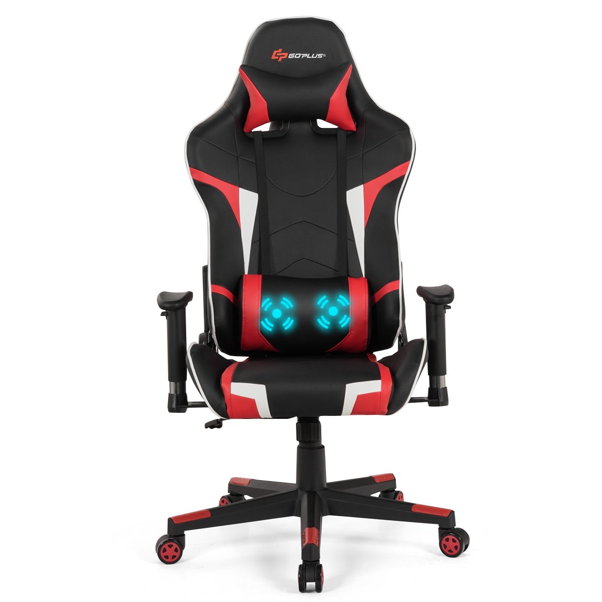 Reclining Swivel Massage Gaming Chair with Lumbar Support-Red