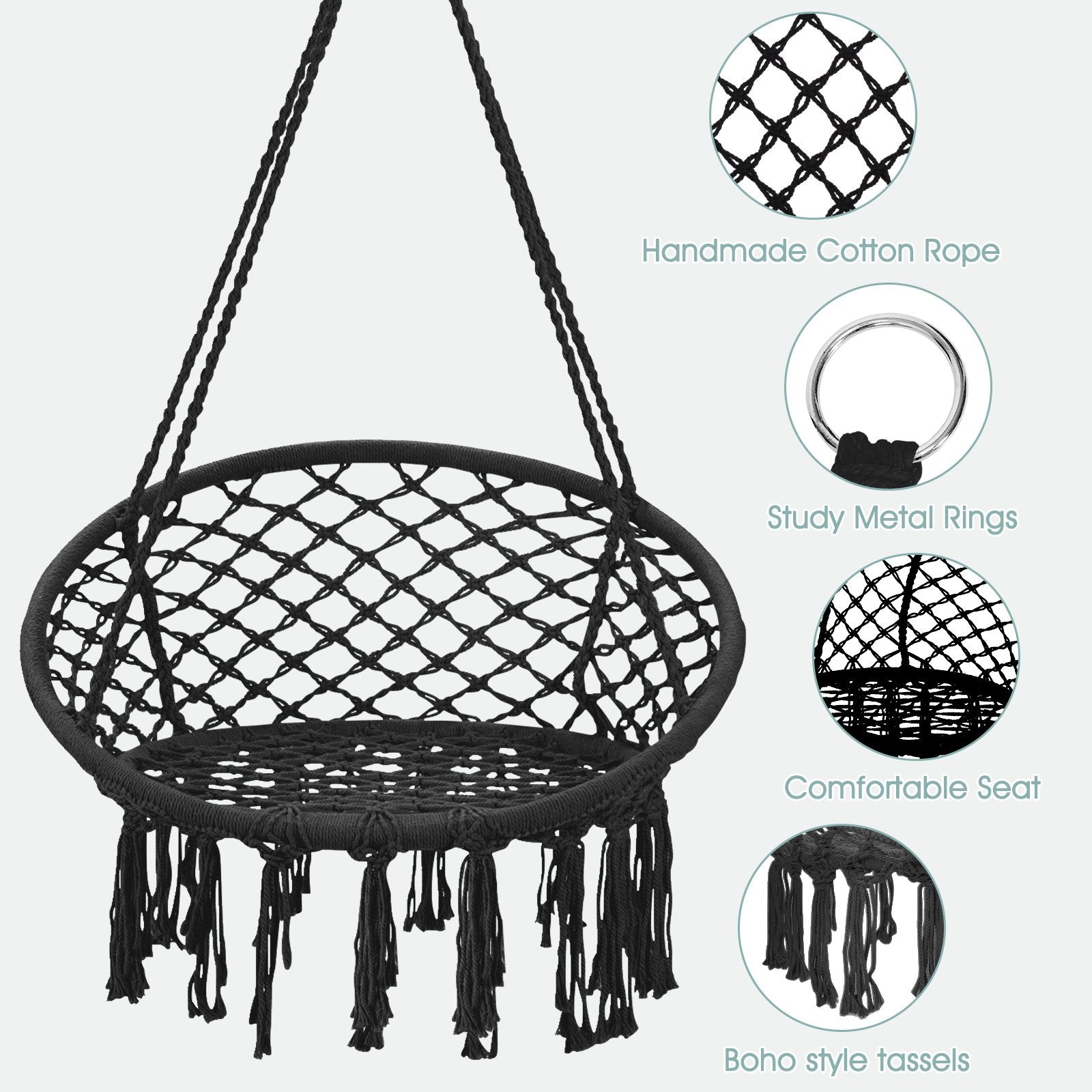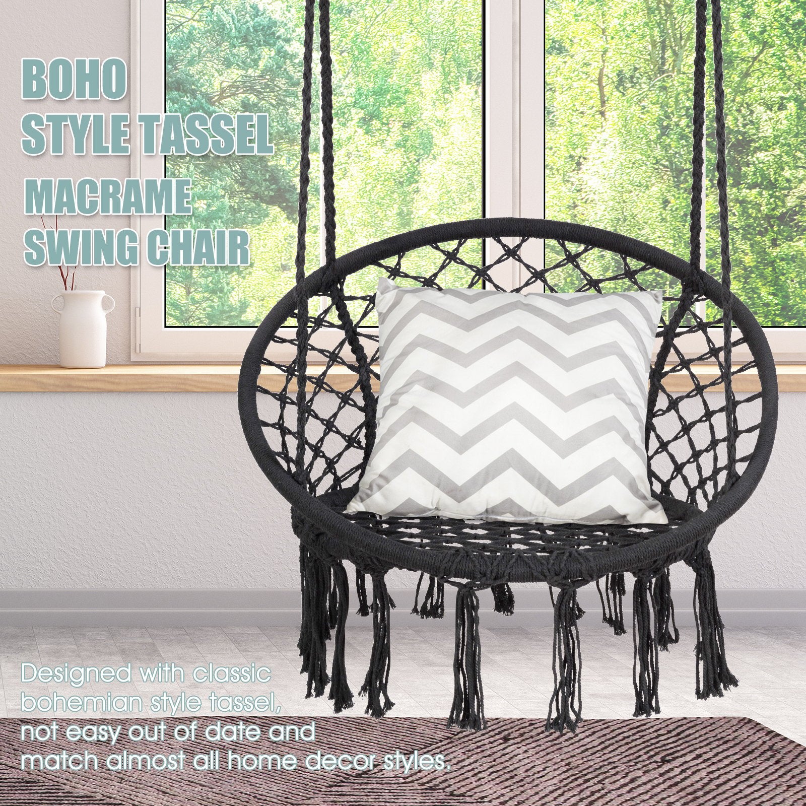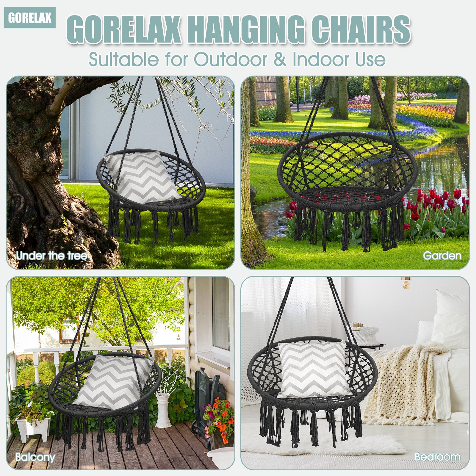 2 Person Hanging Hammock Chair with Cushion Macrame Swing-Gray