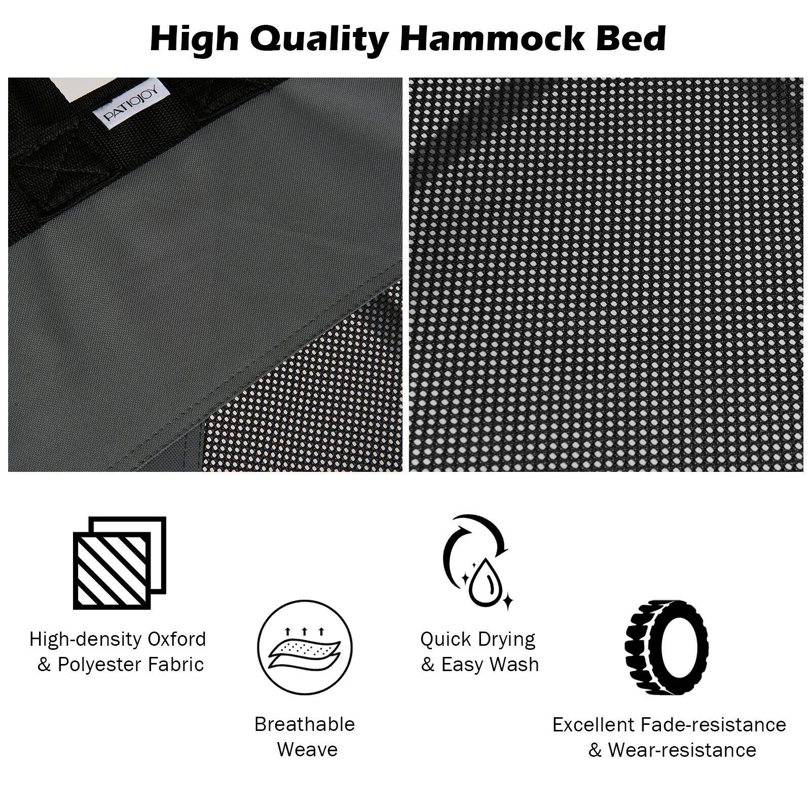 High-Density Oxford and Polyester Fabric: This comfortable hammock bed is crafted with high-strength oxford fabric that resists to wears fade and rips and breathable polyester fabric that is cool and easy to wash. Plus equipped with a convenient grid pattern storage pocket offering easy access to books phones electronics and other items.