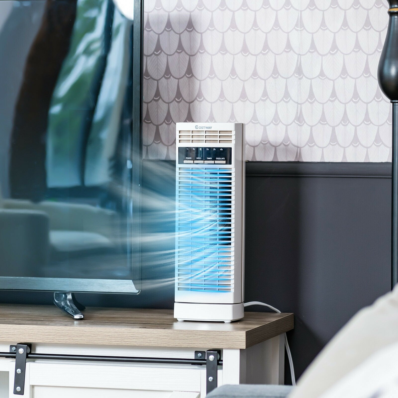 14 Inch Mini Oscillating Tower Fan Electric Desk Fan with 3 Speed and Timer-White