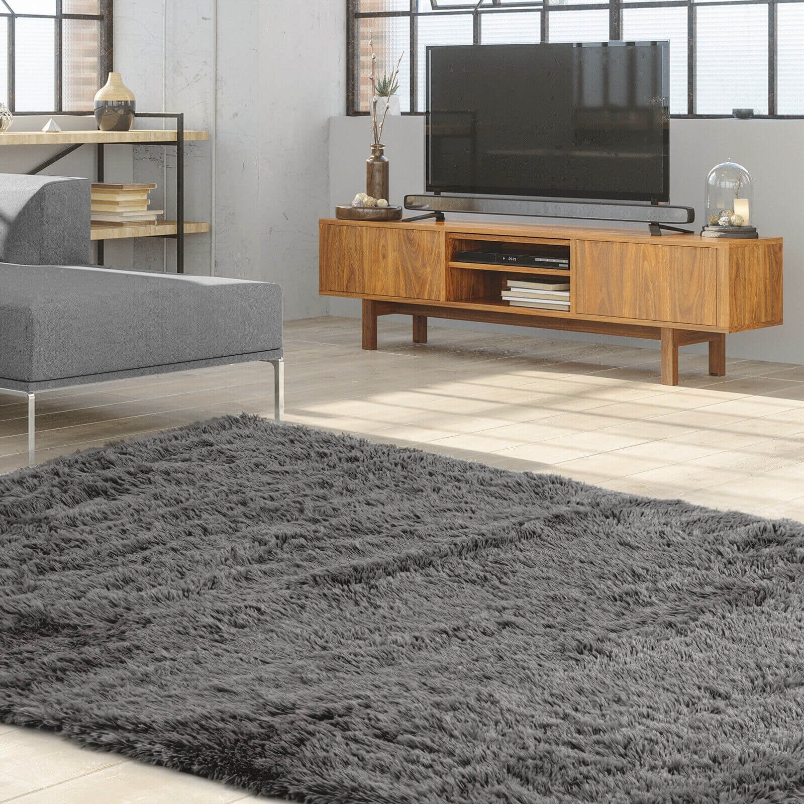 5 x 7 Feet Modern Rectangular Soft Shag Area Rug for Living Room Bedroom-Gray