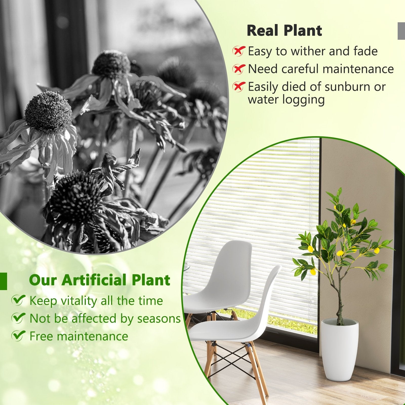 Realistic & Full-Bodied Appearance: The 2.6/4/5.2 ft tall artificial lemon tree features vibrant and cute lemon fruits paired with verdant leaves which mimics the appearance of a real lemon plant bringing a touch of freshness to your home. And it is completed with simulated moss for an authentic touch.