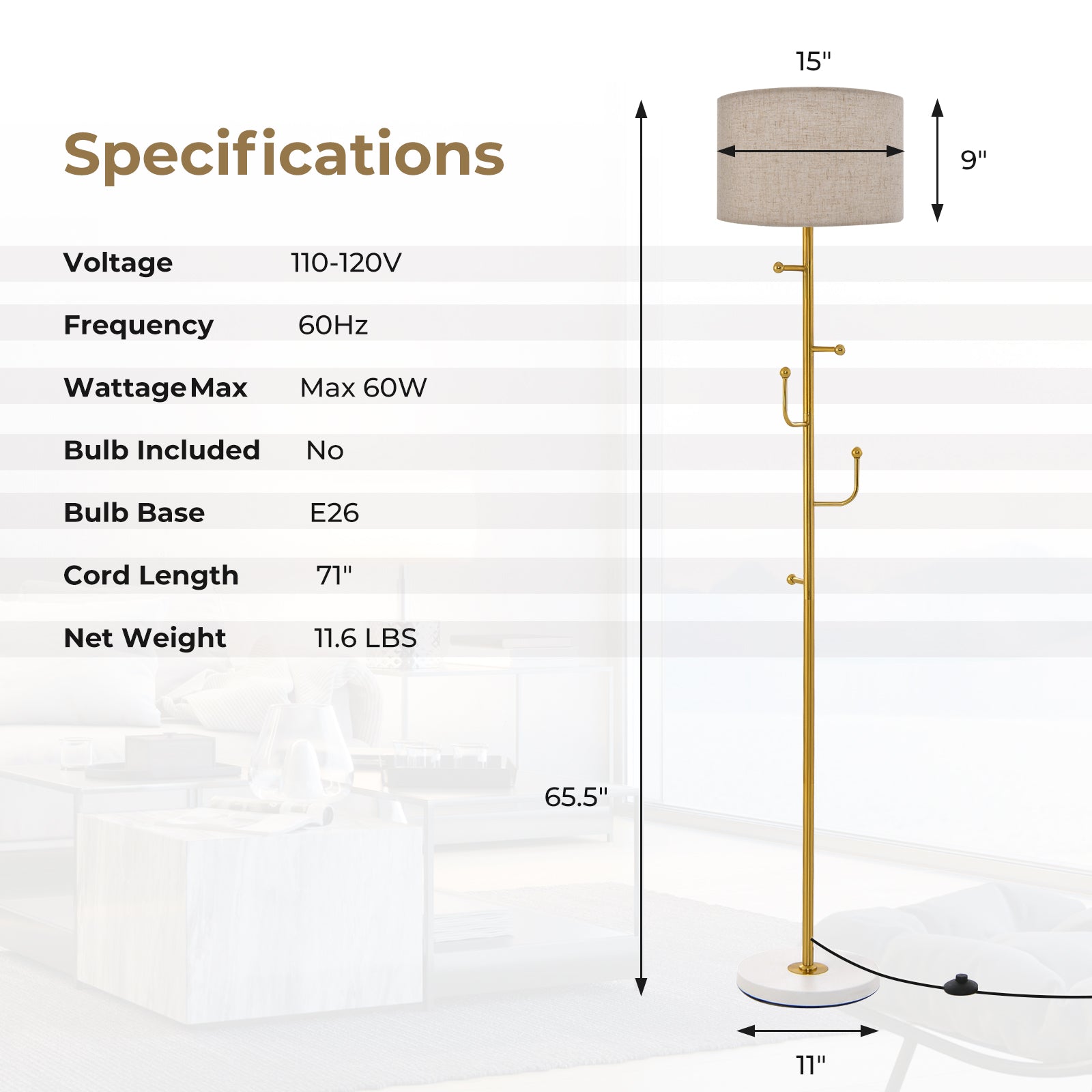 2-in-1 Floor Lamp: This floor lamp is equipped with 5 hooks for more convenience in daily life. It not only brings brightness to you but also offers a perfect place to hang your coat hat bag scarf and so on.