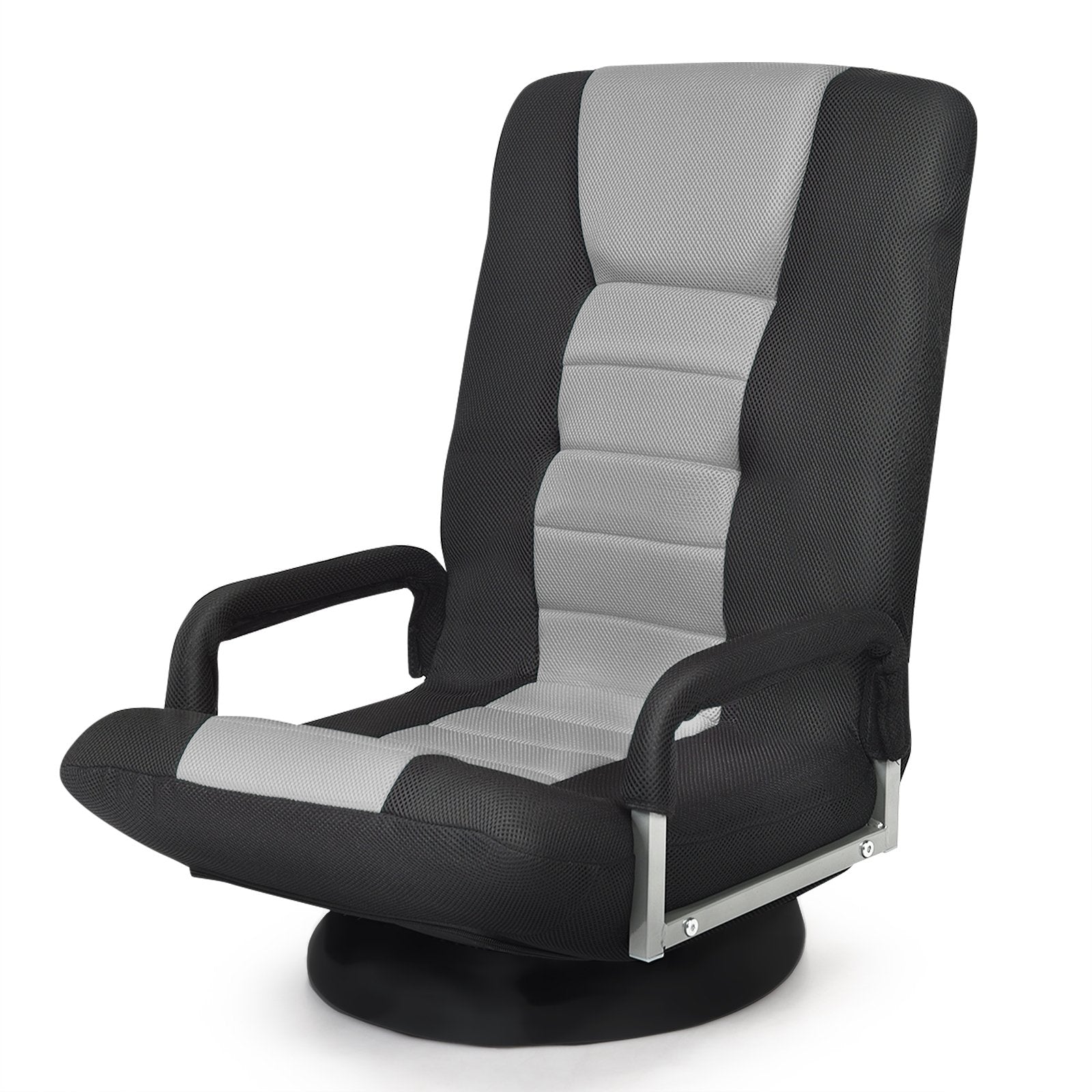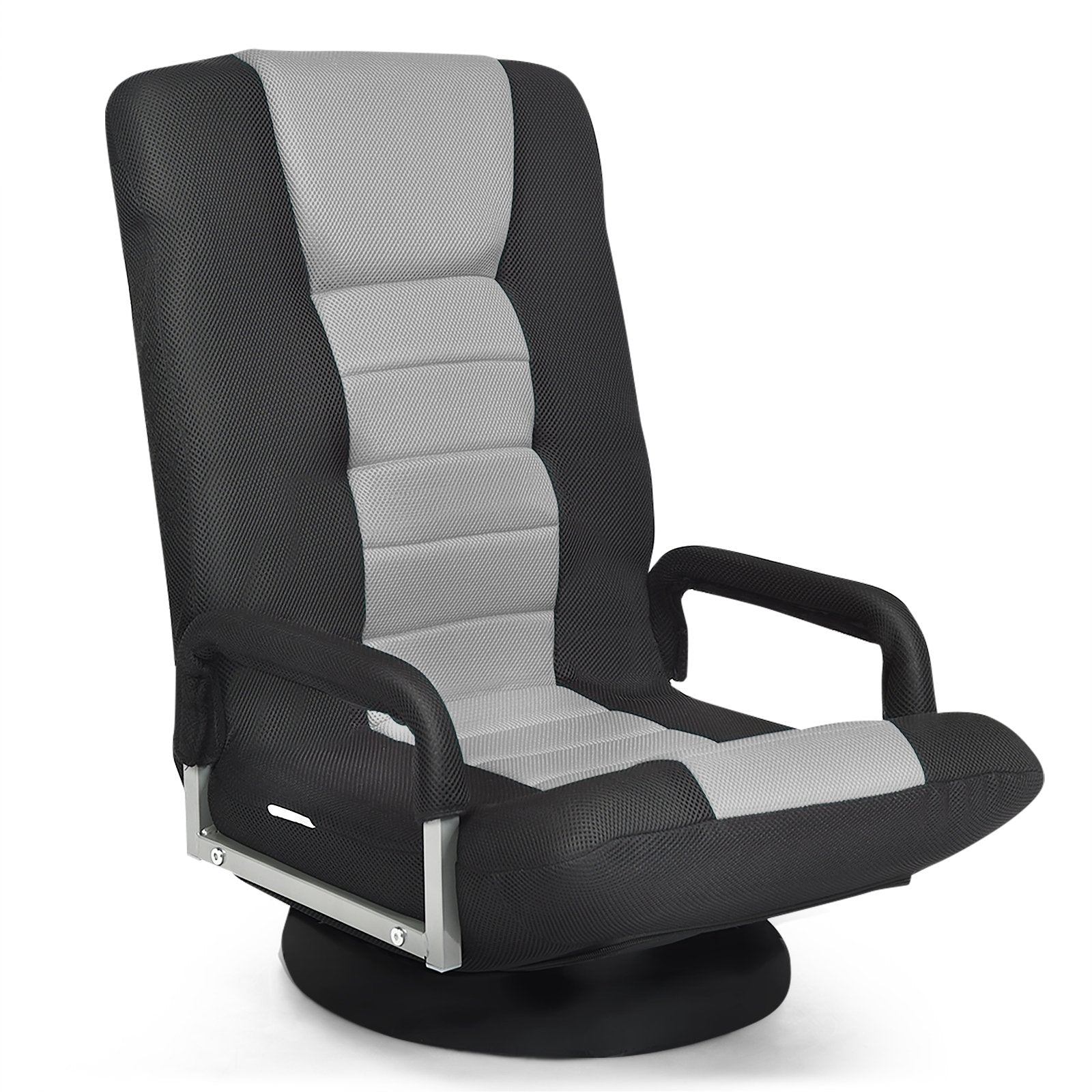 360-Degree Swivel Gaming Floor Chair with Foldable Adjustable Backrest-Gray