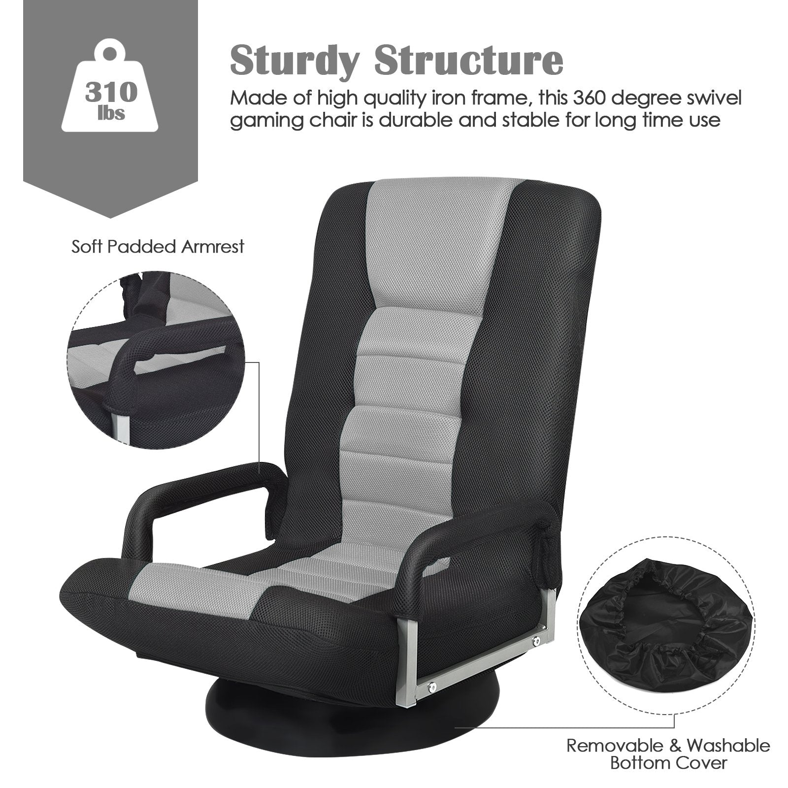 6-Position Adjustment and 360° Swivel: The floor chair is designed with an adjustable 6-position backrest to fulfill different individual requirements. Adjust the backrest to your desired Angle with ease which only needs you to exert your body pressure on it. More 360° swivel base brings much more convenience in turning around your body for added fun.