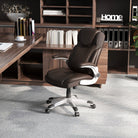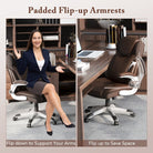 Ergonomic Office PU Leather Executive Chair with Flip-up Armrests and Rocking Function-Brown