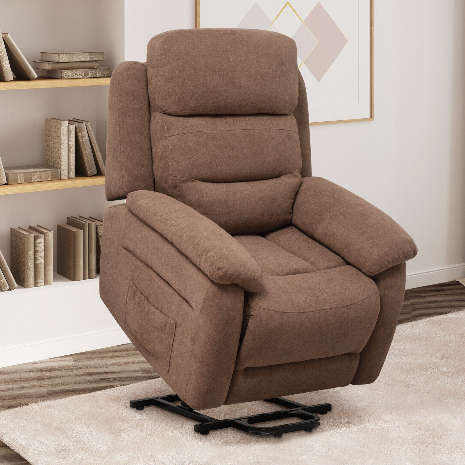 Power Lift Recliner Sofa with Side Pocket and Remote Control-Brown