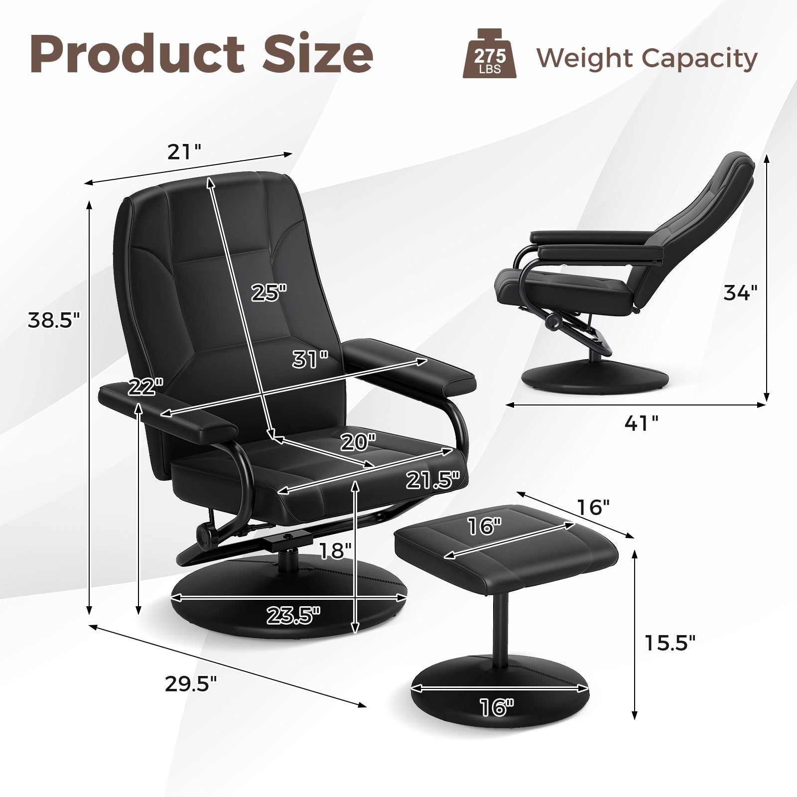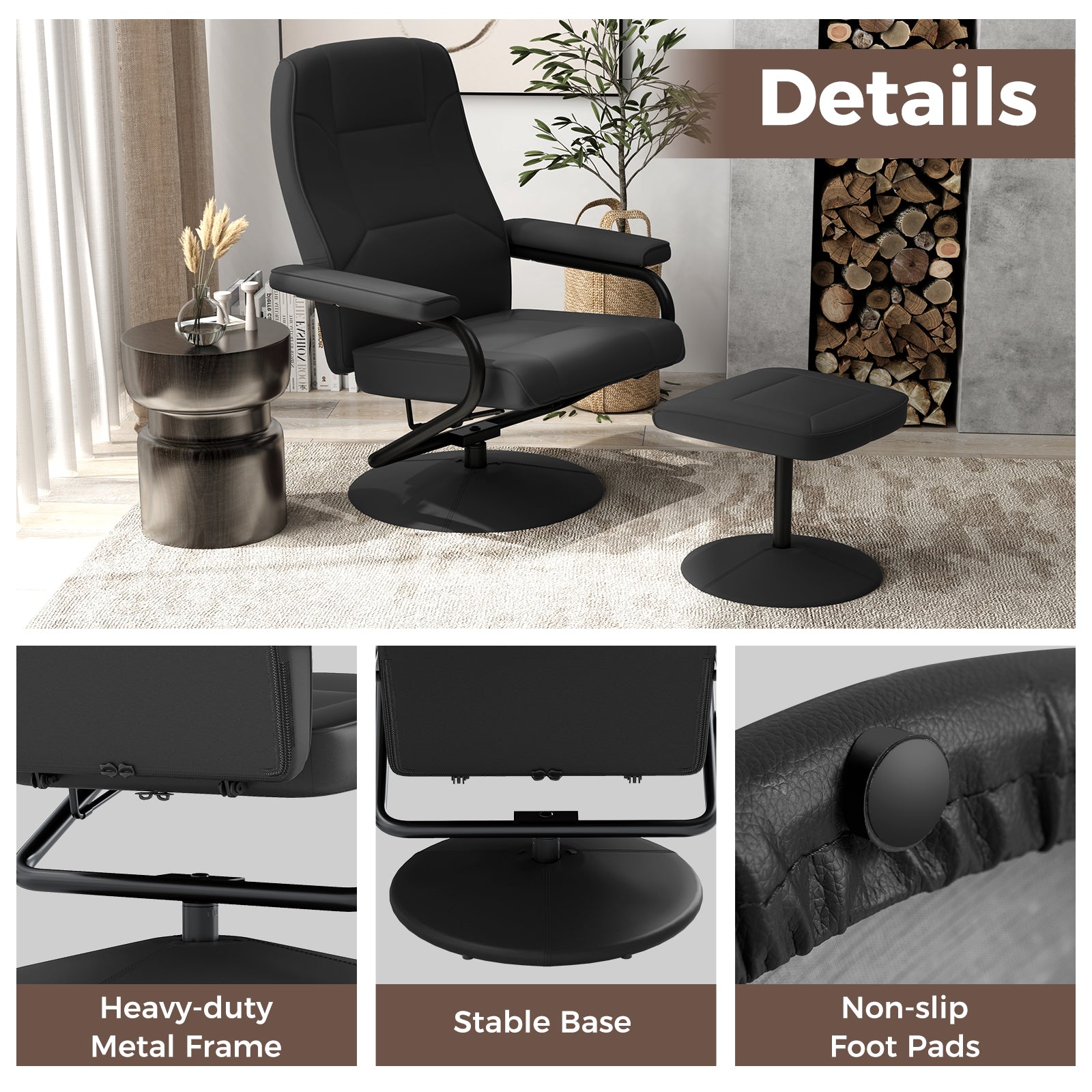 Swivel Lounge Chair Recliner with Ottoman-Black