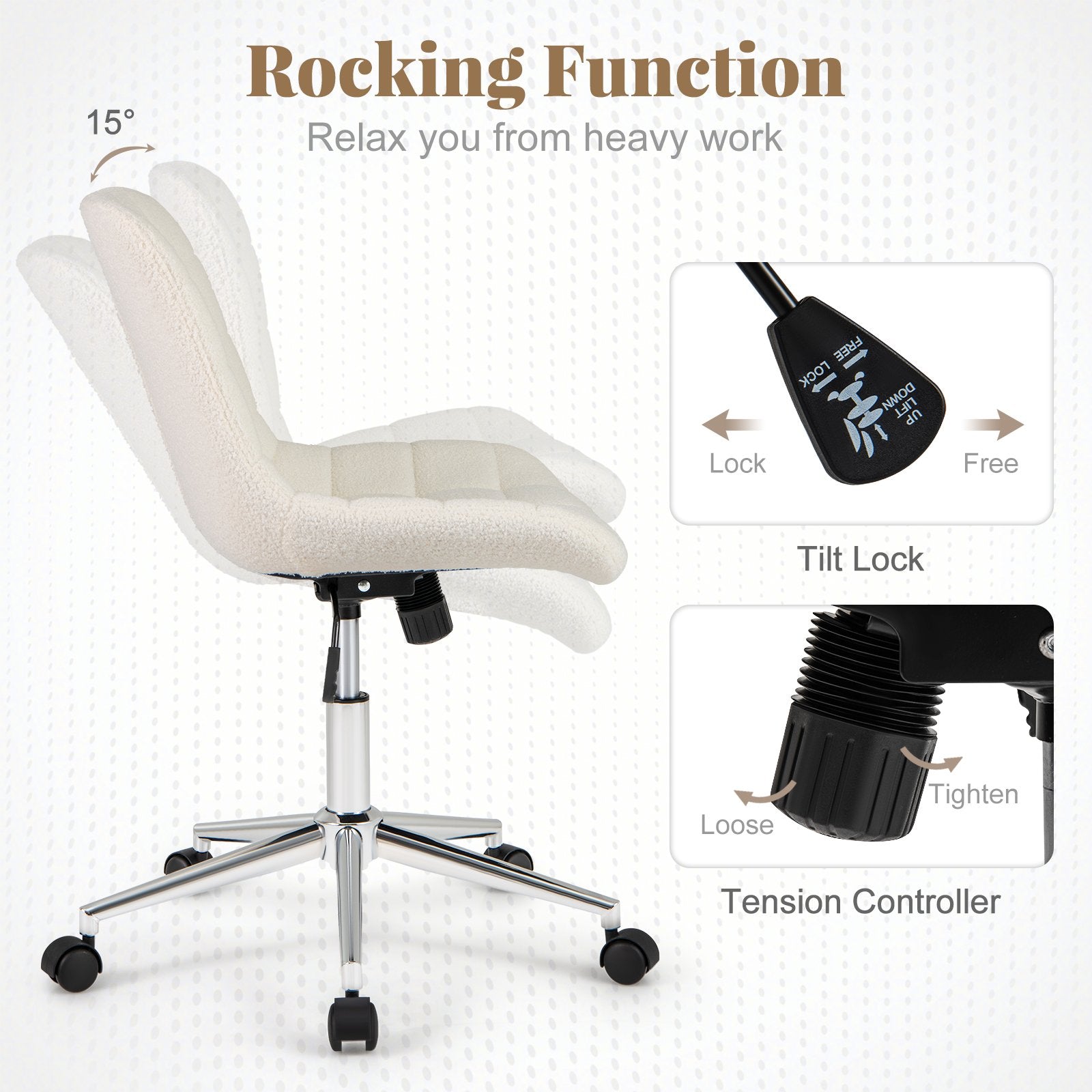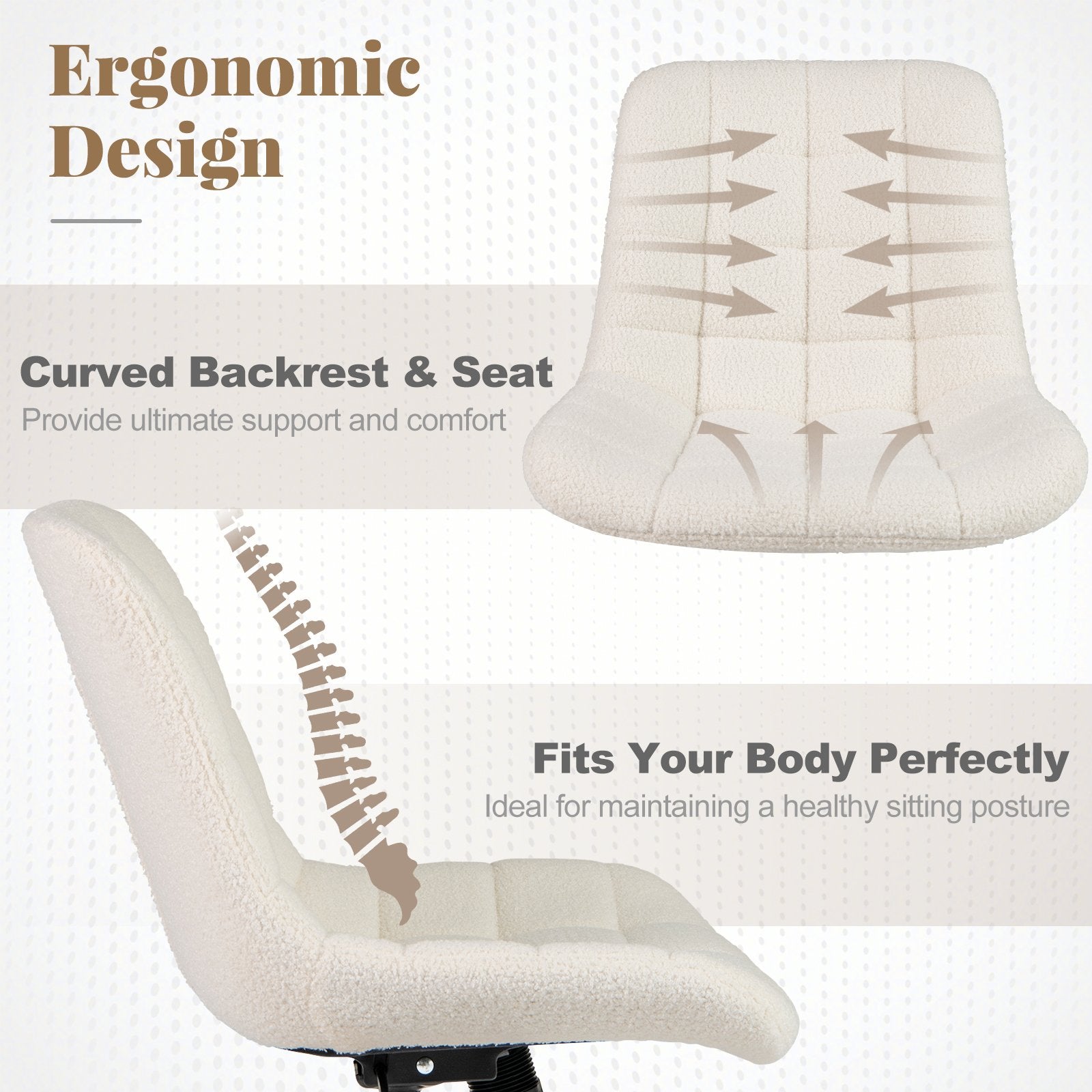 Teddy Fleece Armless Office Chair Makeup Vanity Chair-White