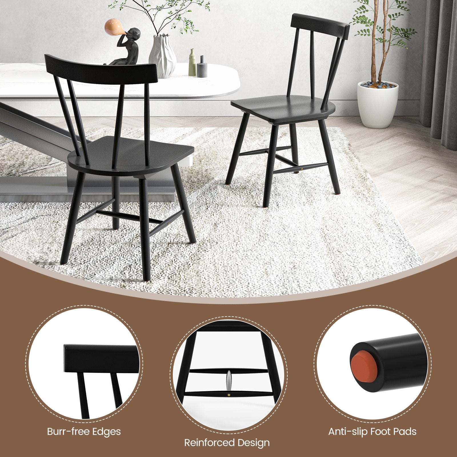 Windsor Style Armless Chairs with Solid Rubber Wood Frame-Black