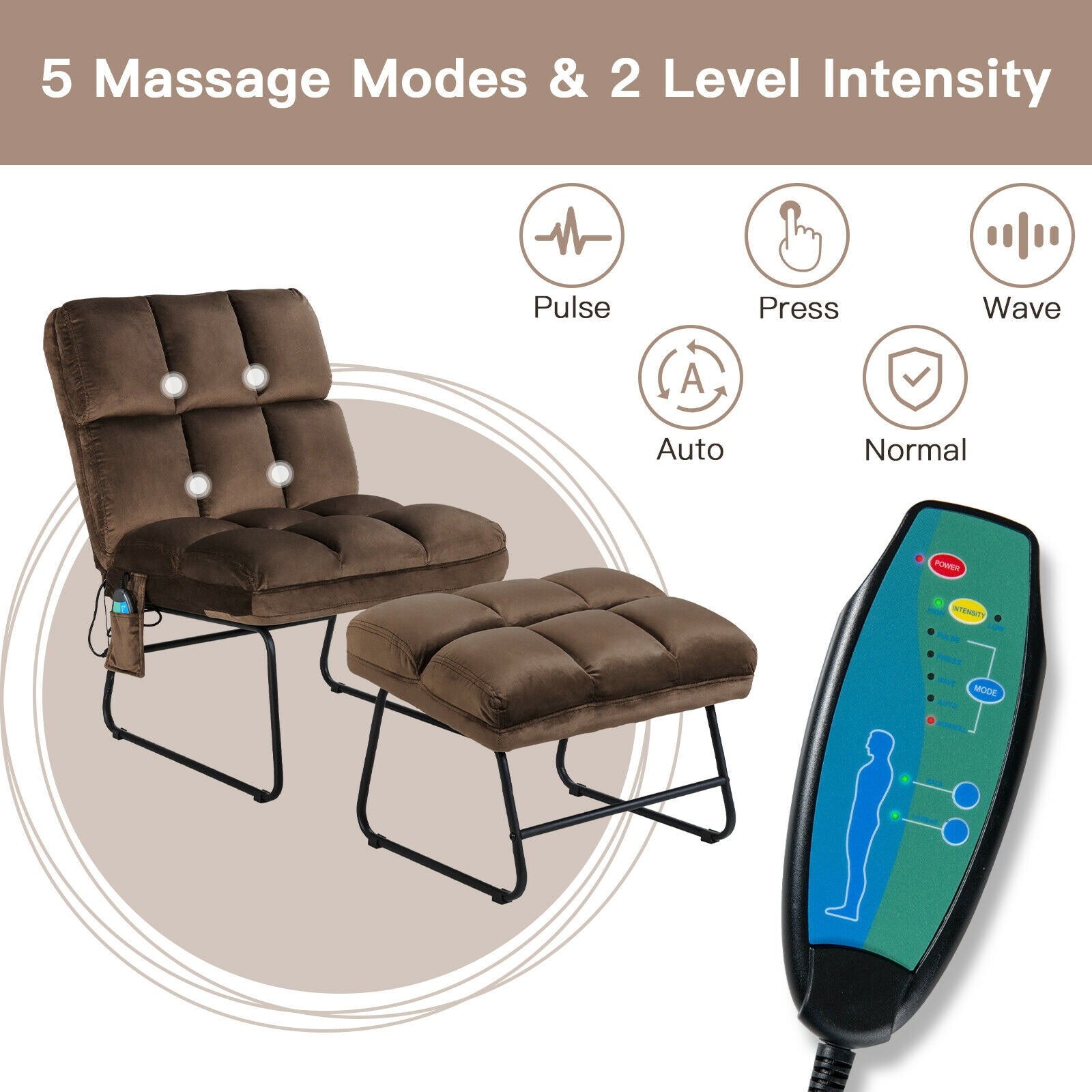 Massage Chair Velvet Accent Sofa Chair with Ottoman and Remote Control-Brown