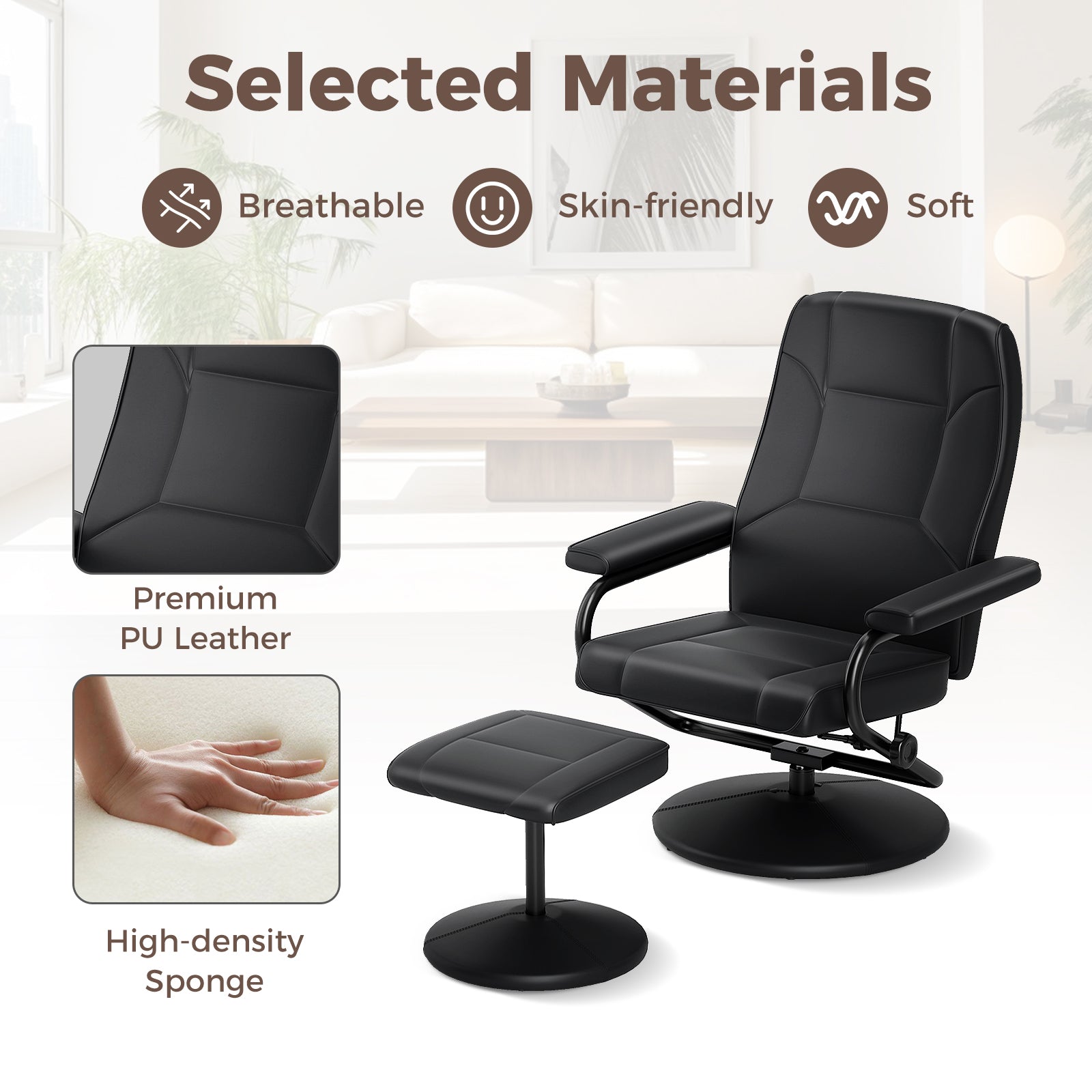 Swivel Lounge Chair Recliner with Ottoman-Black