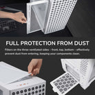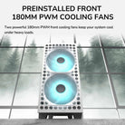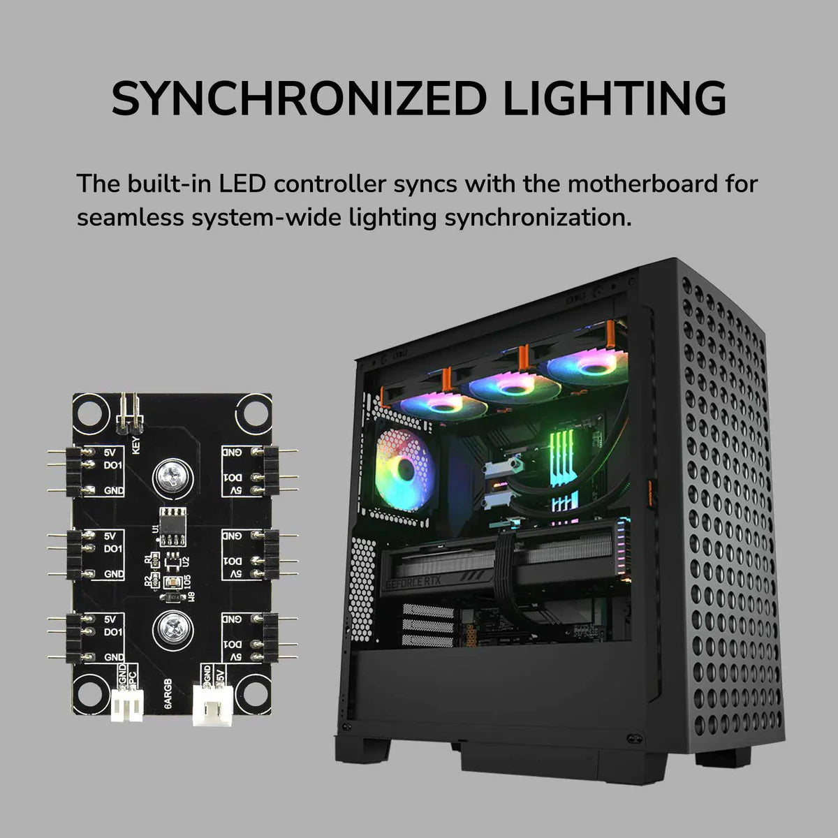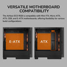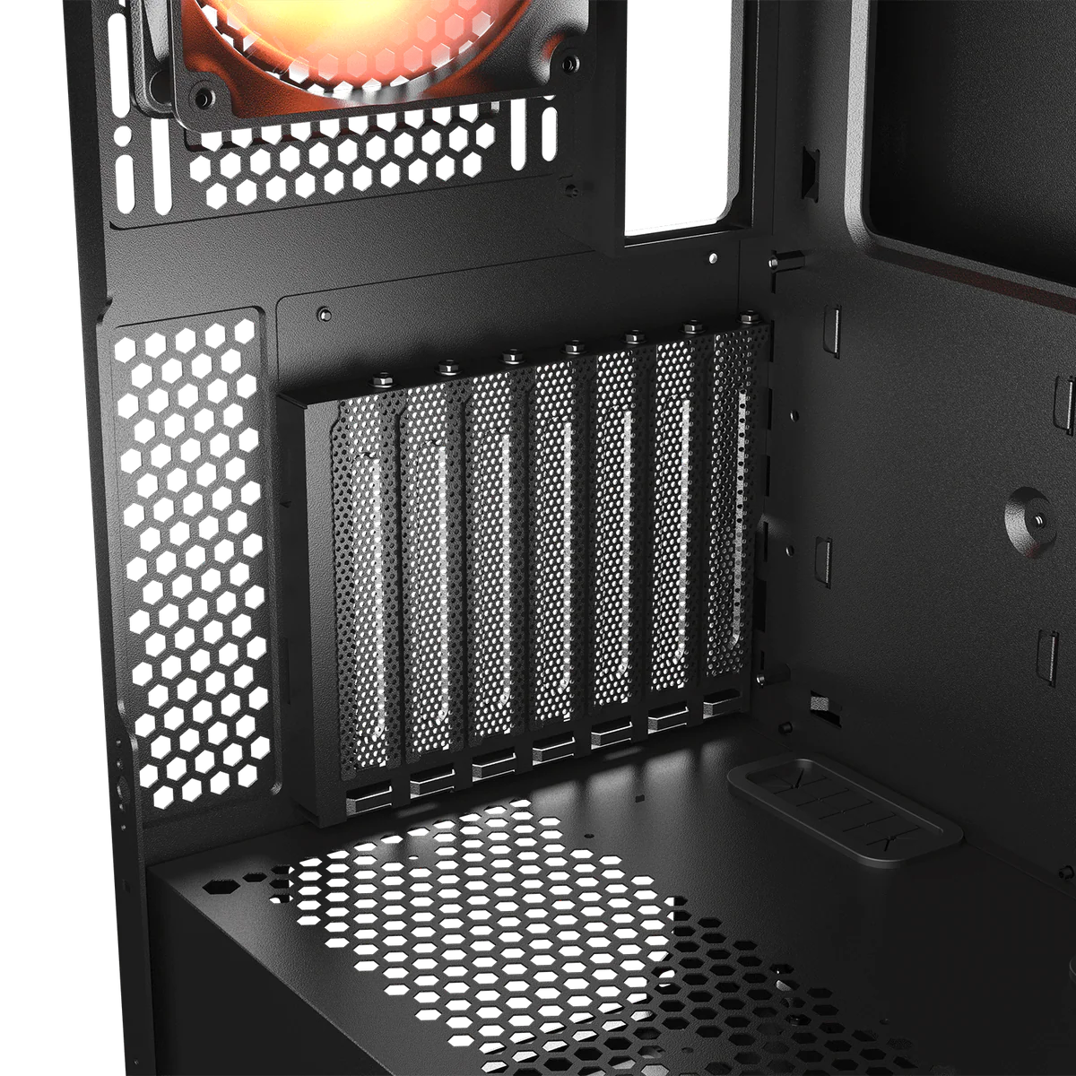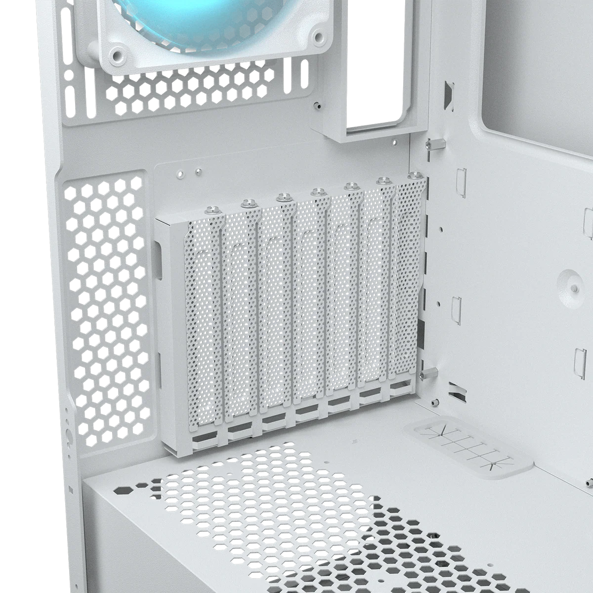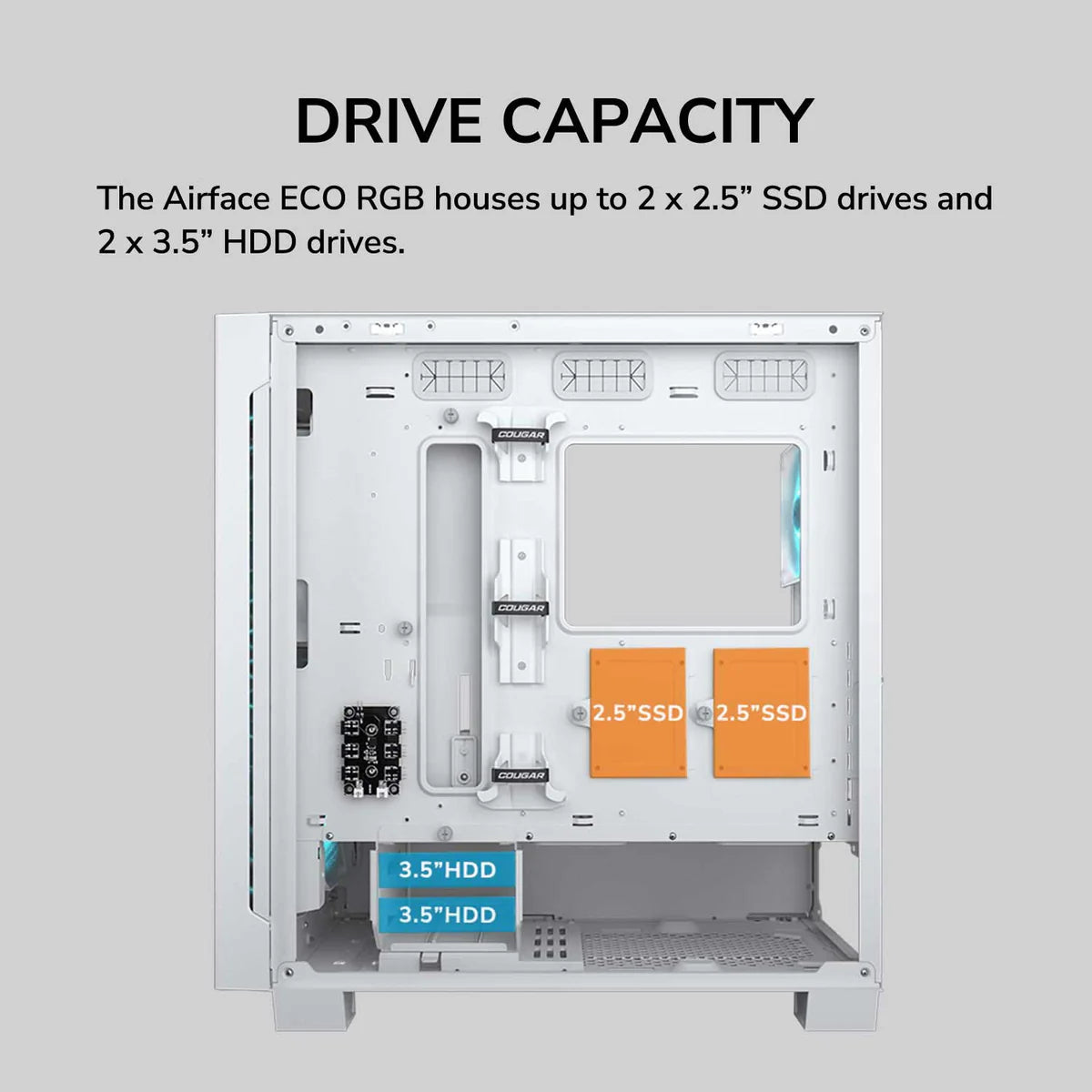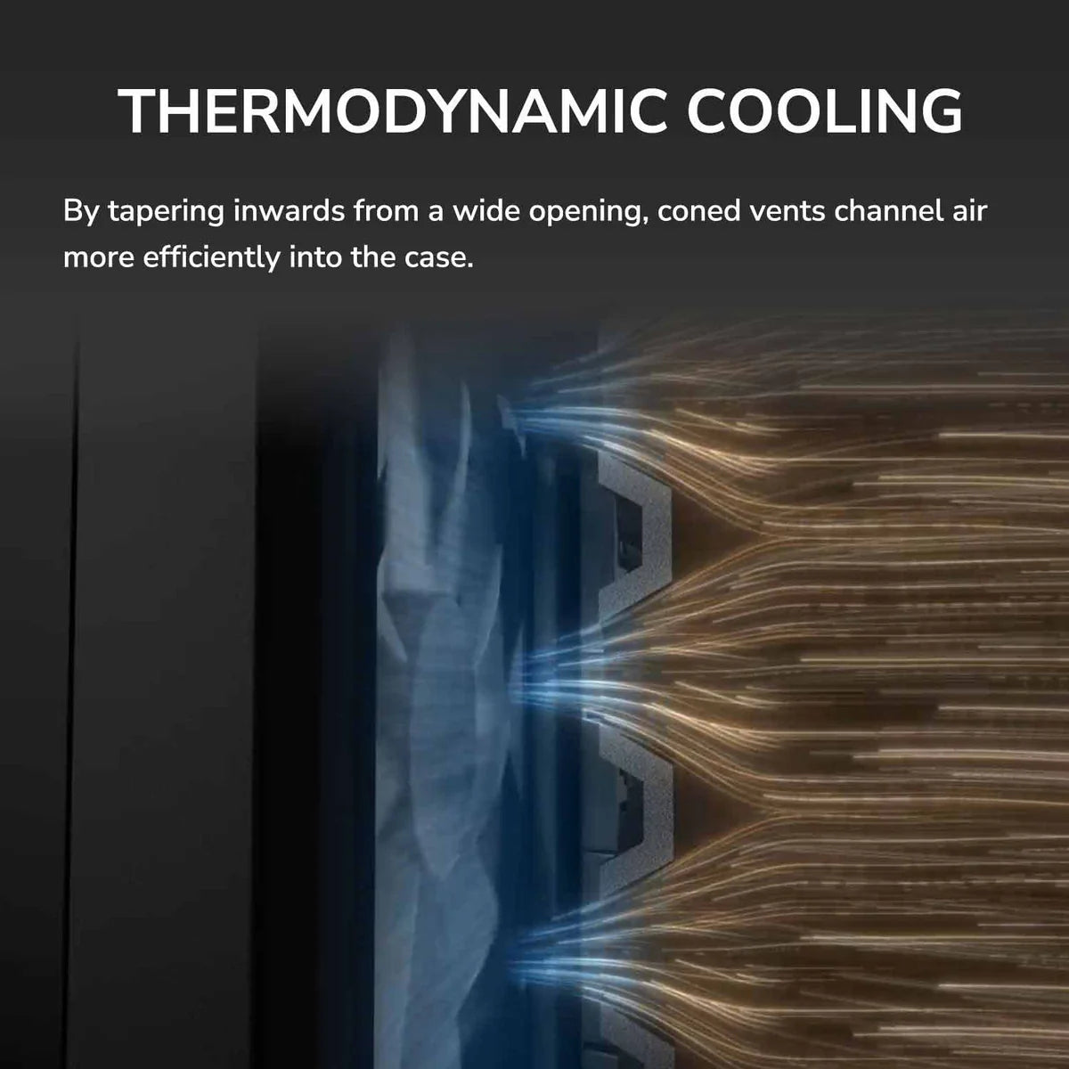 The Airface ECO RGB blends eco-conscious engineering with premium features in a mid-tower design ideal for both intense gaming sessions and efficient work-from-home setups. Its unique coned-vent front panel and dual 180 mm PWM ARGB fans deliver powerful cooling using less energy, while the modular I/O panel, quick-slide dust filters, and removable top make building and access a breeze. With vertical GPU support, tidy cable management, and synchronized RGB lighting that seamlessly matches your motherboard, this case is as practical as it is visually striking.